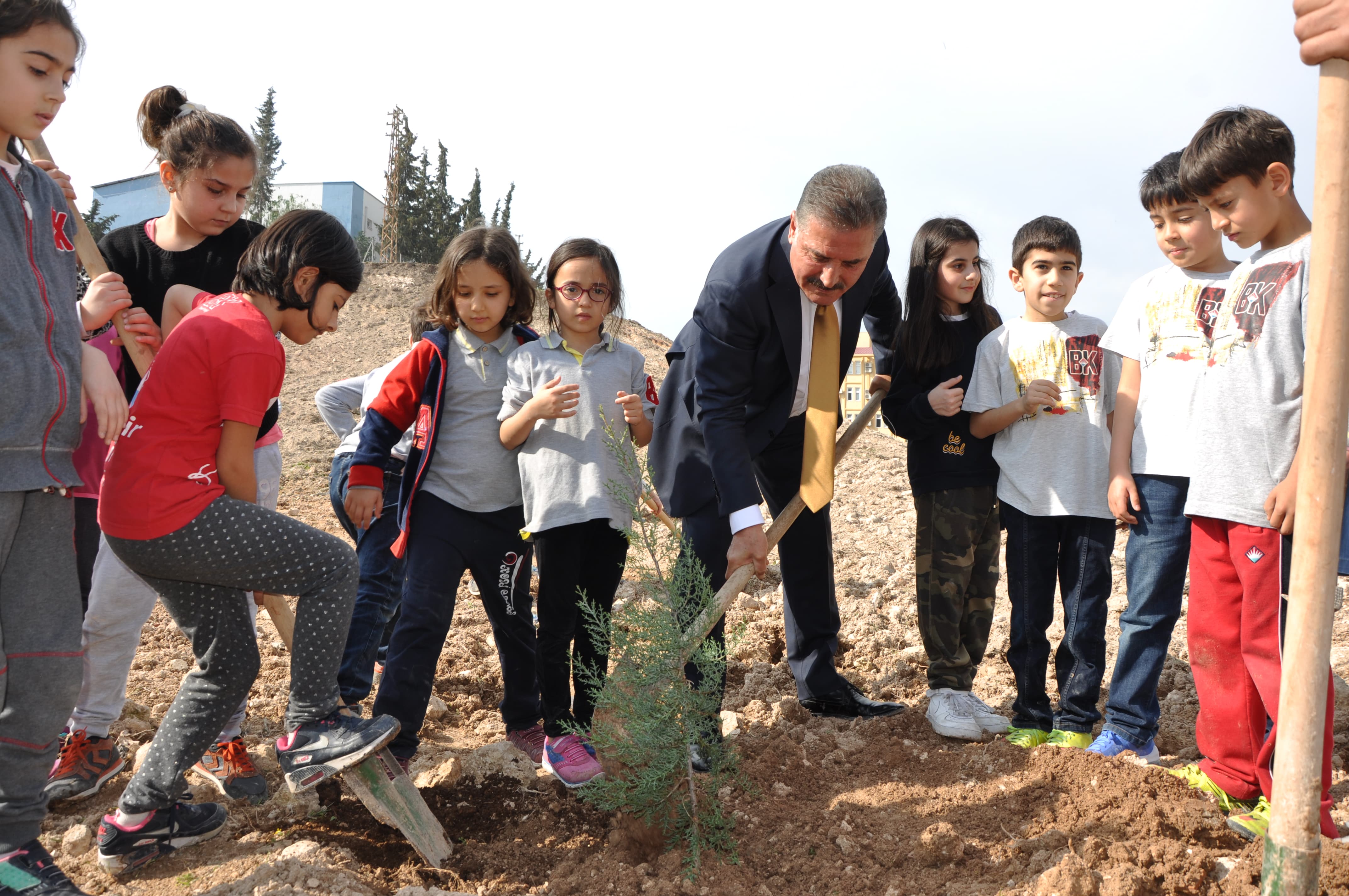 Toroslar Belediye Başkanı Hamit Tuna, her yıl 21-26 Mart tarihleri arasında kutlanan Orman Haftası etkinlikleri öncesinde Bahçeşehir Kolejinin minik öğrencileriyle bir araya gelerek ağaç dikim çalışması yaptı.