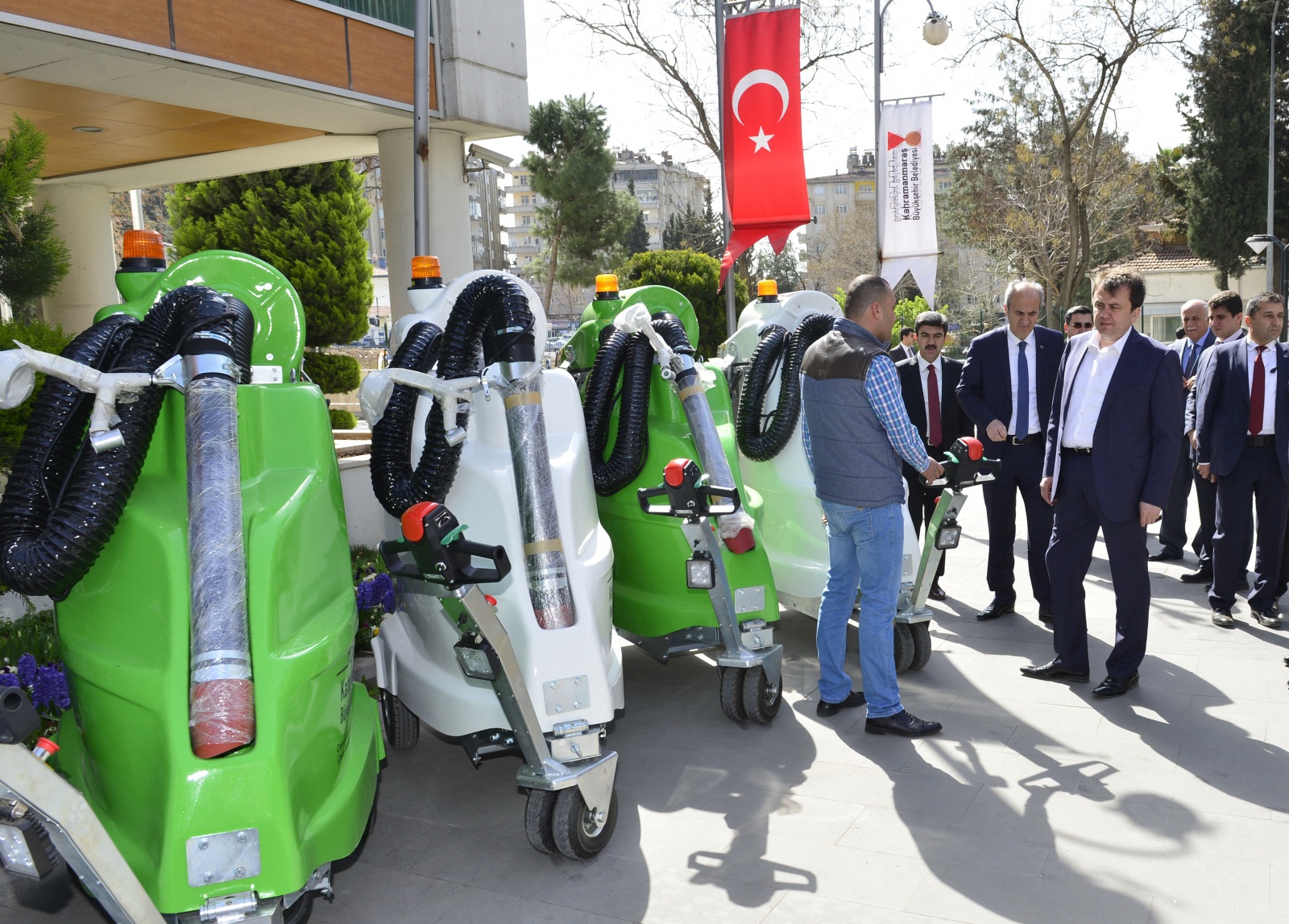 Büyükşehir Belediyesi Çevre Koruma ve Kontrol Dairesi Başkanlığı Çevre Koruma ve Kontrol Şube Müdürlüğü bünyesinde alınan 35 adet elle kumandalı akülü mobil temizlik makinası hizmete sunuldu.