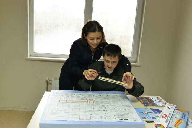 Tepebaşı Belediyesi Engelliler Koordinasyon Merkezi Yaşam Köyü Montaj Atölyesi içerisinde model uçak kursu ile engelliler hem el becerilerini geliştiriyor hem de keyifli zaman geçiriyor.