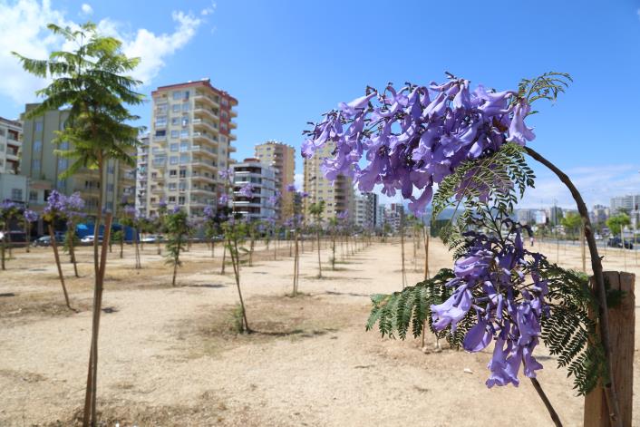 Mezitli Belediyesi tarafından kamu, kurum ve kuruluşlar aracılığıyla yapılan ve Jacaranda ağaçlarından oluşan koruluklar, ‘Mor renkli’ çiçek açtı.