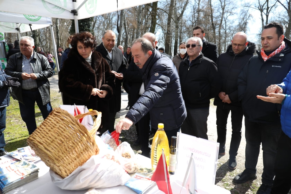 Dünyanın en güzel ülkelerinden birinde yaşadığımızı belirten Belediye Başkanı Recep Gürkan, “Dünyanın en güzel ülkelerinden birinde dünyanın en güzel insanlarıyla birlikte yaşıyoruz, bu cennet vatanda, bu cennet ülkede. Elbette belediyelerin görevlerinden biri de kentlinin yaşamındaki vazgeçilmez unsurlarla ilgili önemli farkındalıklar yaratmak. Kuşkusuz belediyeler, yönetiminde bulunduğu kentlerde insanların daha sağlıklı bir yaşamı sürdürebilmesi için her noktaya müdahale etmek zorunda. Her alanda farkındalık yaratmak zorunda. İnsanların, toplumun, yöneticilerin dikkatini çekmek zorunda. Bugün Türkiye’de, siyasi parti ayrımı yapmadan söylüyorum, tohumun, toprağın, üretimin öneminin farkına varan, pandemi ile birlikte özellikle sağlıklı gıdanın farkına varan birçok belediyemiz, tohumla, tarımla, üretimle, hayvancılıkla ilgili çok kayda değer çalışmalar yapıyorlar. Bunu önemsiyoruz” ifadelerine yer verdi.