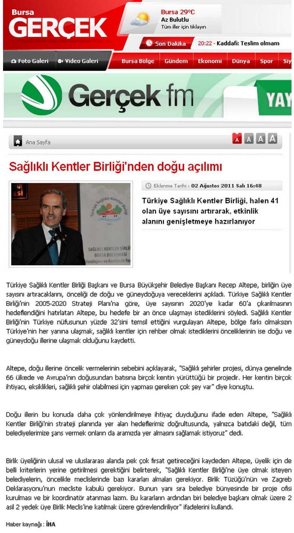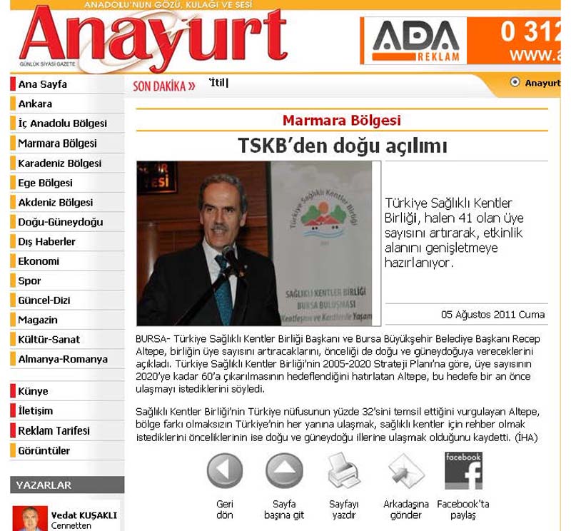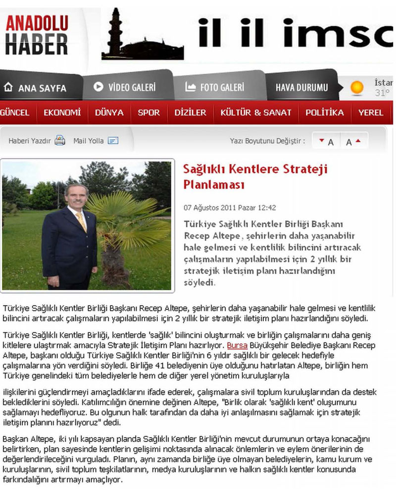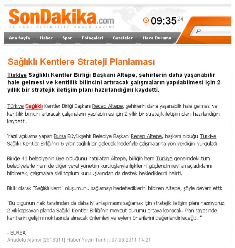 2011 Yılında Basında Sağlıklı Kentler Birliği