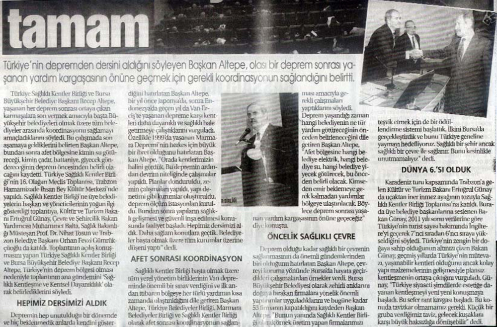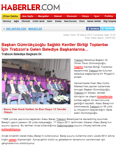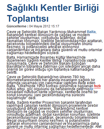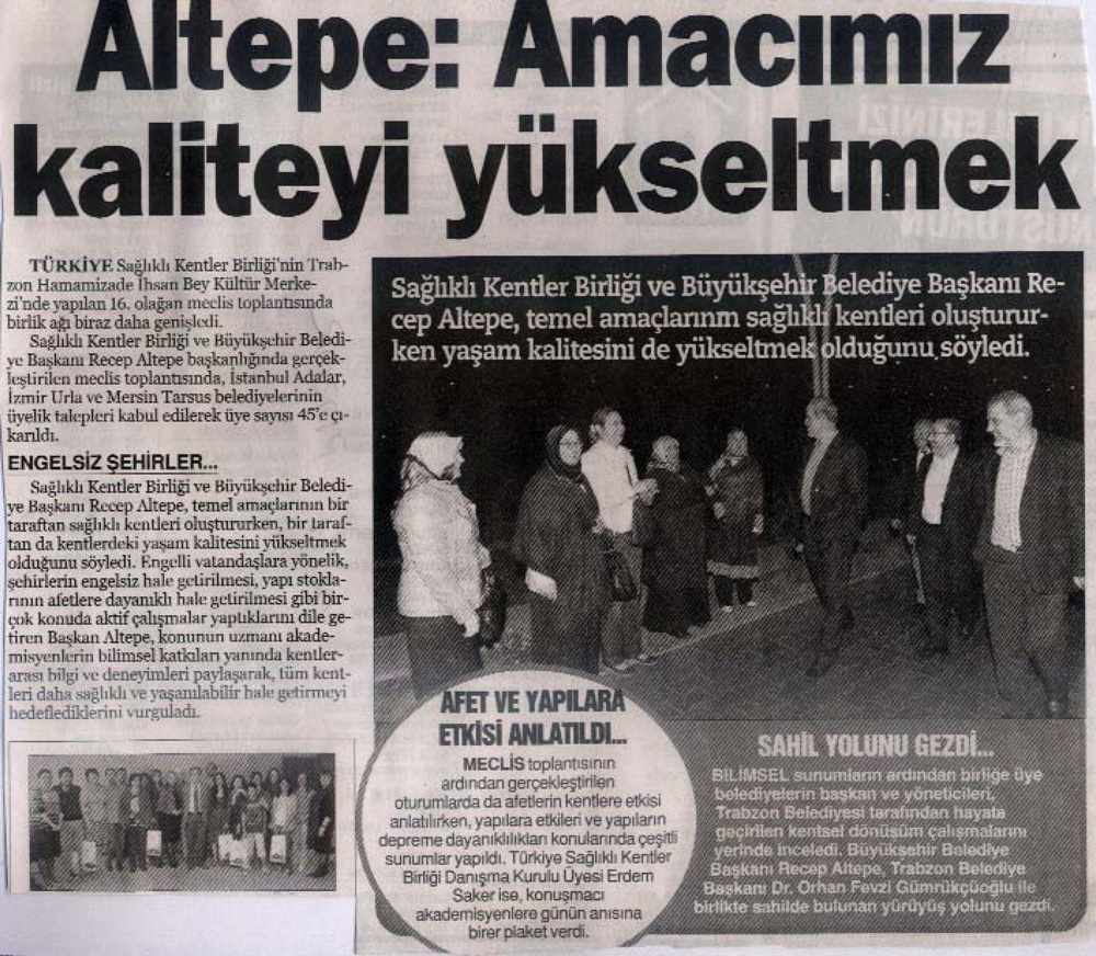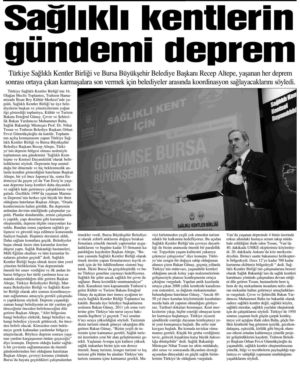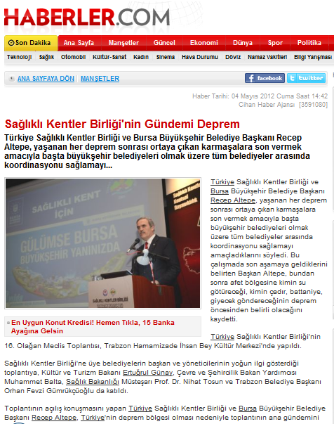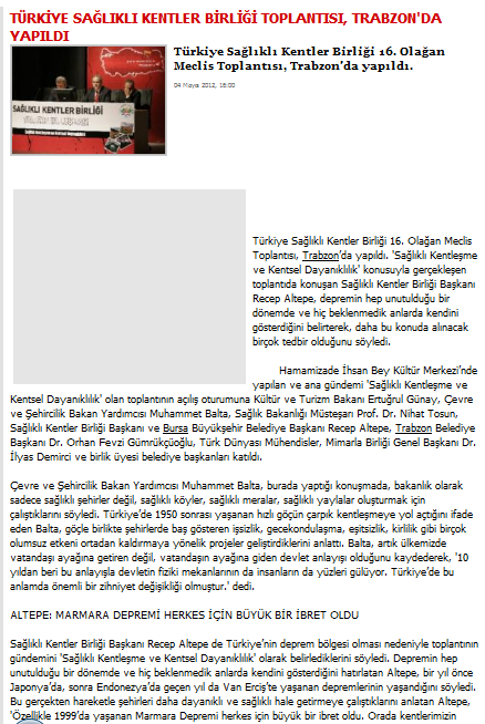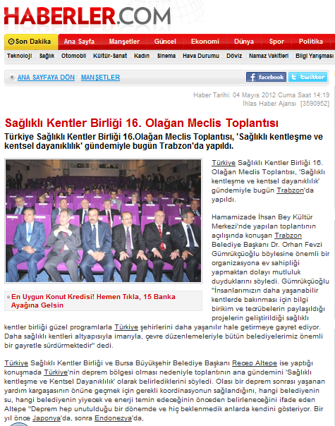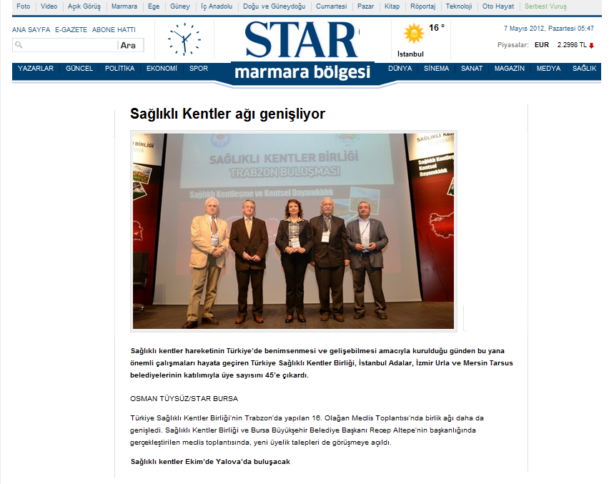2012 Yılında Basında Sağlıklı Kentler Birliği