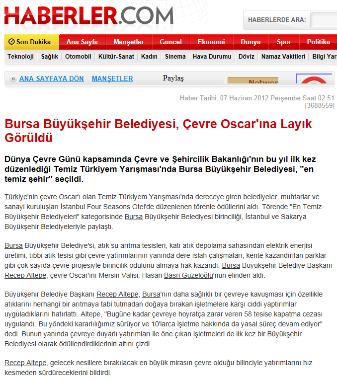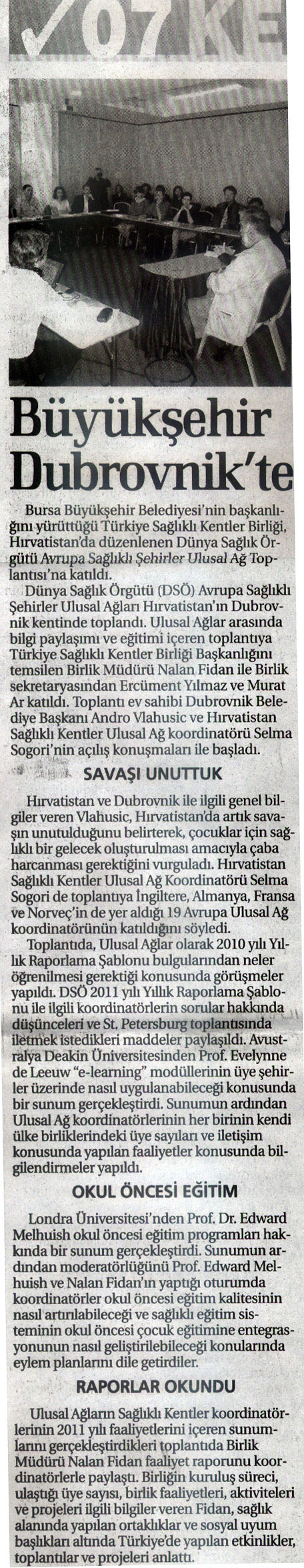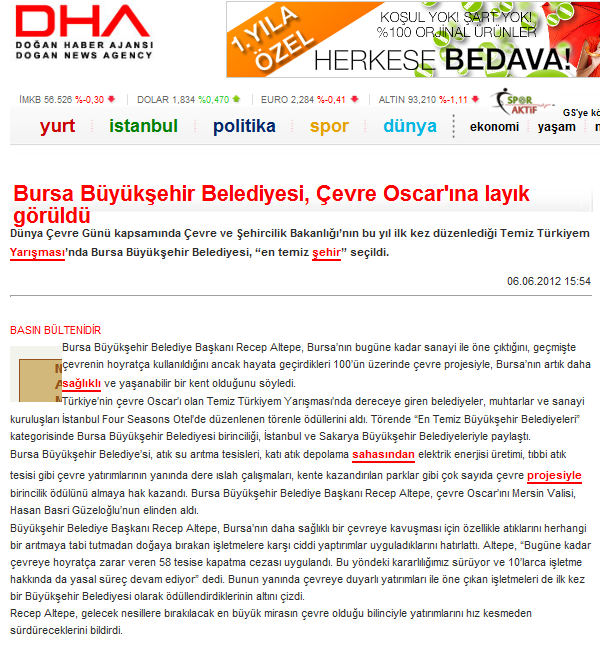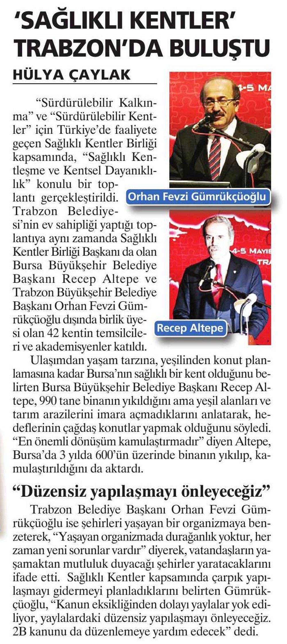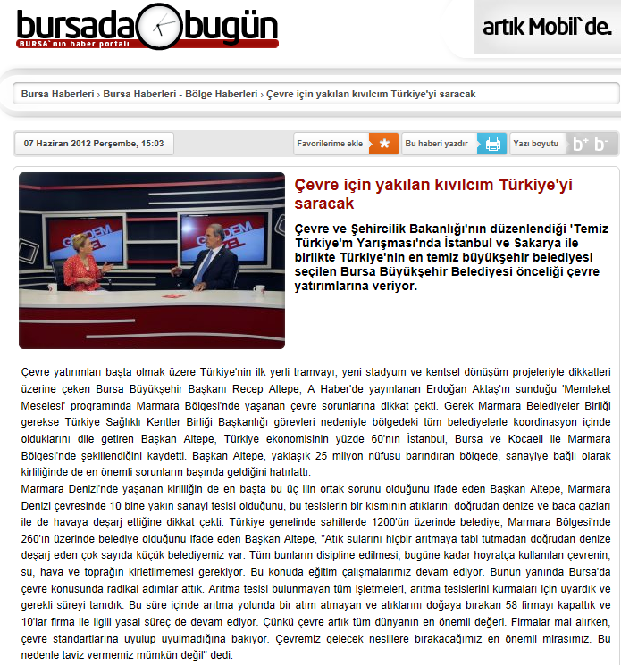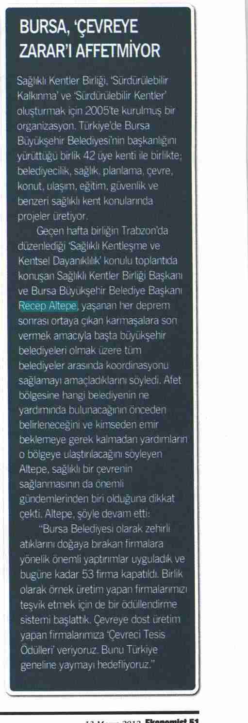2012 Yılında Basında Sağlıklı Kentler Birliği
