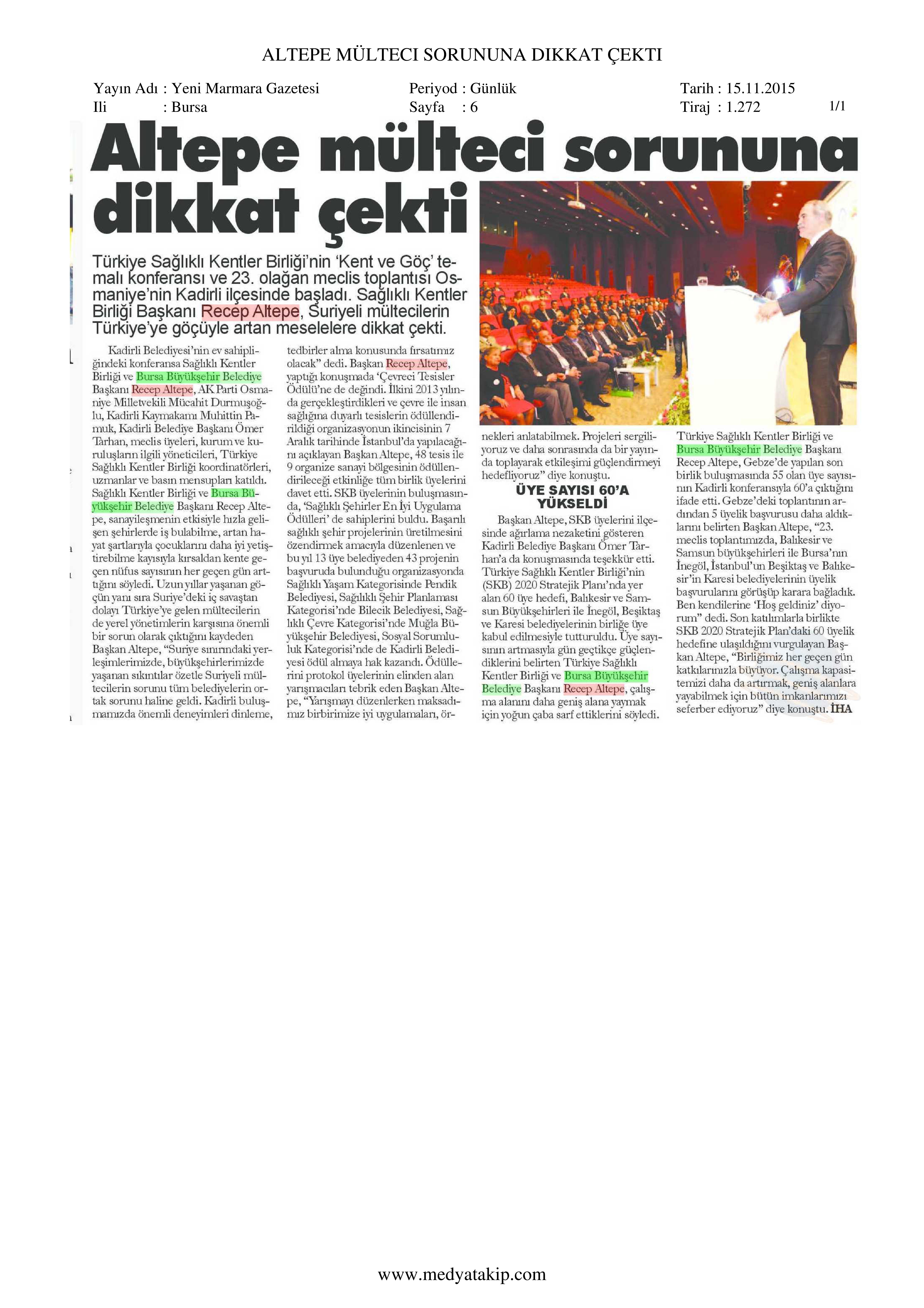 2015 Yılında Basında Sağlıklı Kentler Birliği