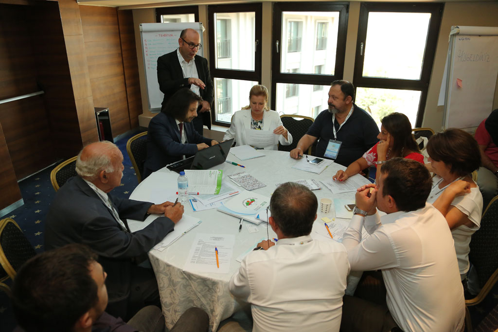 Ardından, Birlik Danışma Kurulu üyelerinin rehberliğinde 5 yuvarlak masa etrafında GZFT analizi gerçekleştirildi ve analiz sonuçlarının sunumları yapıldı.
