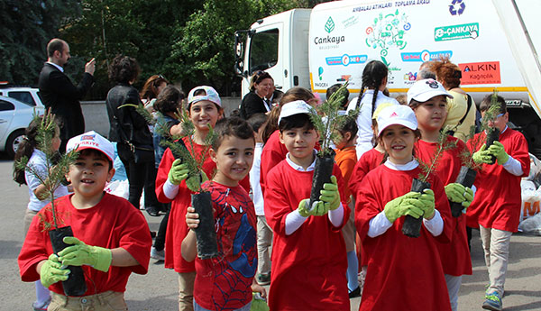 Kampanyanın bitiş noktası olarak seçilen Hamdullah Suphi İlkokulu’ndan 670 öğrenciye de çam fidanı dağıtıldı. Çankaya Belediyesi yetkililerini ellerinde geridönüşüm poşetleriyle karşılayan çocukların heyecanı ve sevinci de görülmeye değerdi. Yaklaşık iki hafta boyunca evlerinde geri dönüştürülebilir ambalaj atığı toplayan çocuklar, sıraya girerek atıkları teslim etti. Çocuklar daha sonra öğretmenleri ve çevre ekibiyle birlikte anı fotoğrafı da çektirdi.