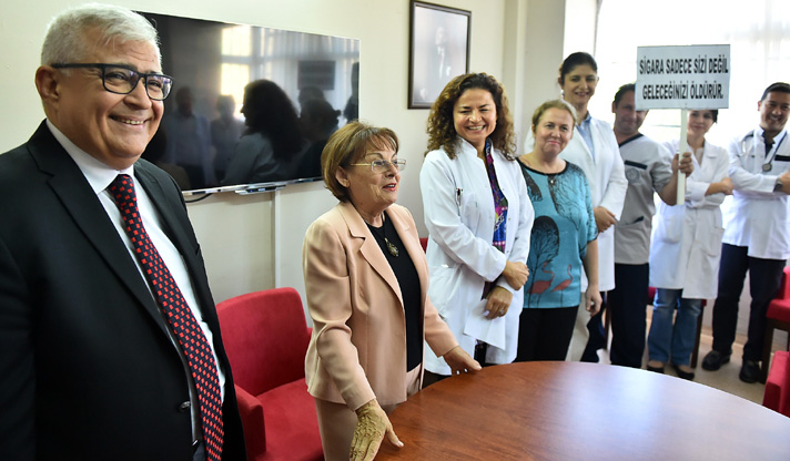 Eşrefpaşa Hastanesi sağlık personelinin ‘Sigarasız Bir Hayat’ için başlattıkları kampanyaya en büyük destek, İzmir Büyükşehir Belediye Başkanı Aziz Kocaoğlu’nun eşi Dr. Türkegül Kocaoğlu’ndan geldi. Hastane yönetimi ve sigarayı bırakan personeli duyarlılıkları nedeniyle kutlayan Dr. Kocaoğlu, “Sigarayla mücadele, hayatın her aşamasında sürdürülmeli. İlk başta da biz sağlıkçılar sigarayı bırakmalıyız” diye konuştu.