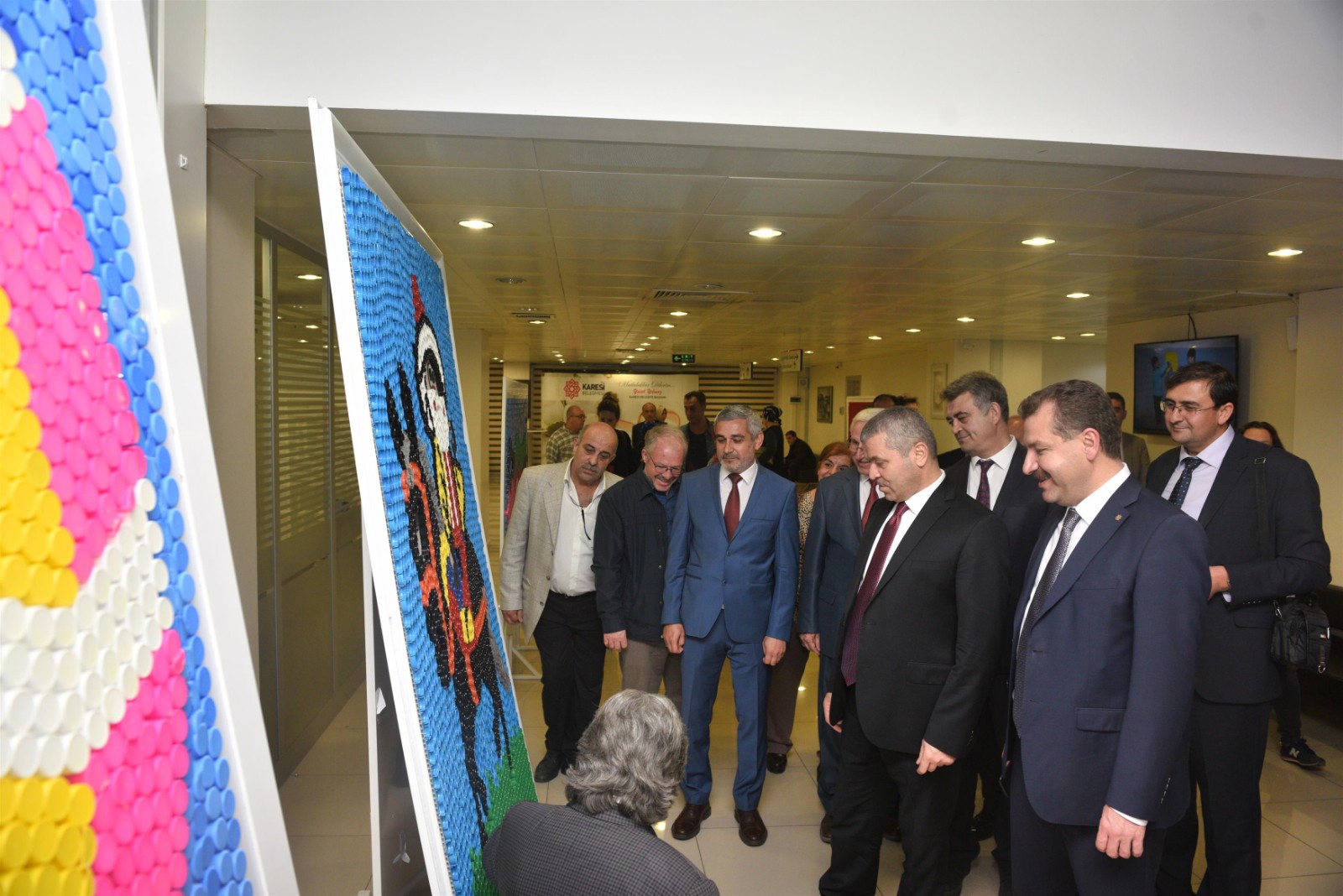 Sergide en büyük ilgiyi ise Mustafa Kemal Atatürk ve Recep Tayyip Erdoğan çalışmaları çekti. Karesi Kent Konseyi Engelli Meclisi’nin himayesinde gerçekleştirilen, Güzel Sanatlar Lisesi, Zafer İlkokulu, Çiğdem Batubey Ortaokulu, Firdevs Hattatoğlu Mesleki Özel Eğitim Merkezi, Fatih Ortaokulu, Şehit Jandarma Teğmen Cengiz Evranos İlkokulu ve Karesi Rehberlik Araştırma Merkezinin proje paydaşı olarak yer aldığı özel çocukların plastik şişe kapaklarından yaptığı sanat eserlerinin yer aldığı yaptığı mozaik tablo sergisi düzenlenen törenle açıldı.