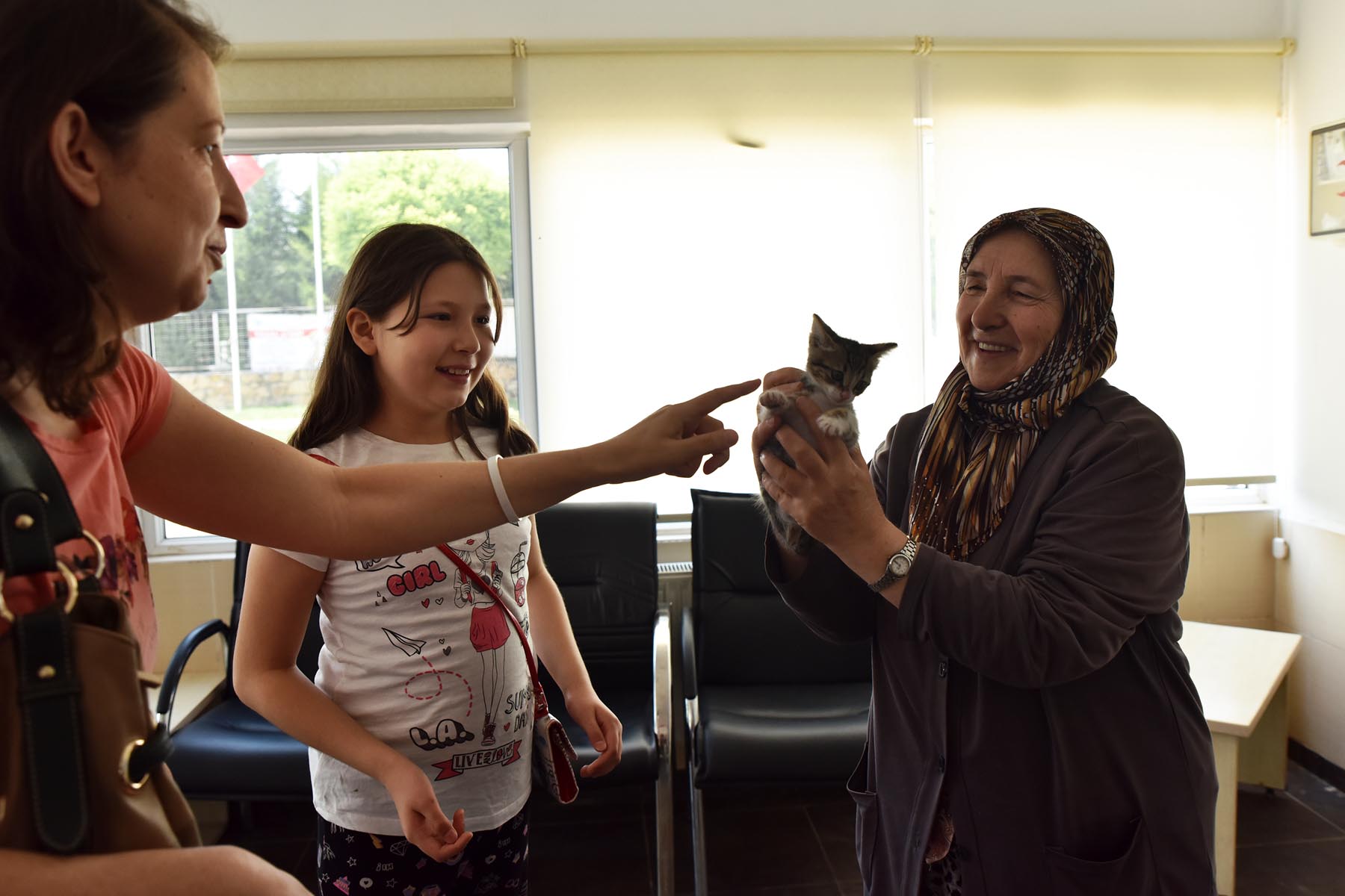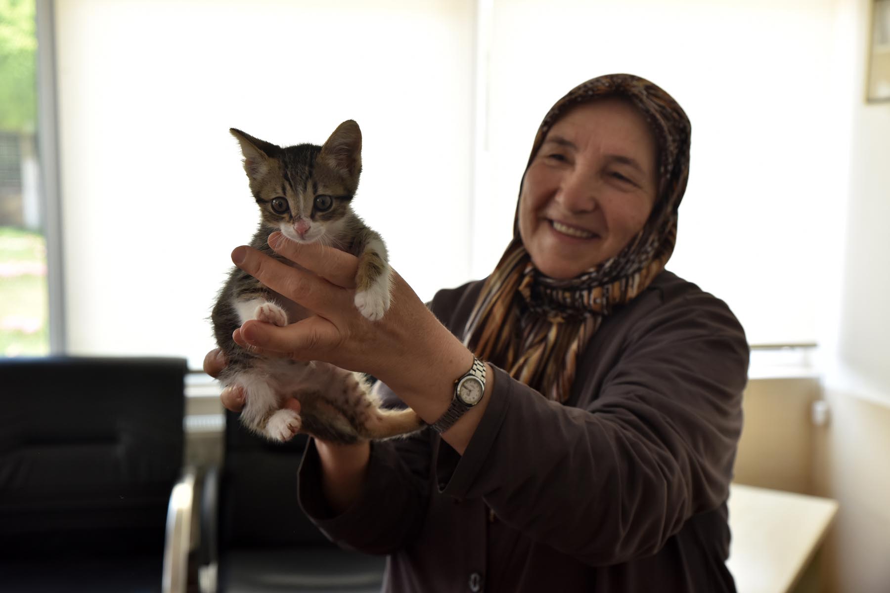 Doğal Yaşam Merkezi’nde uzman veterinerlerin gözetiminde sağlığına kavuşan kedi ve köpeklere, Eskişehirliler yoğun ilgi gösteriyor. Son olarak sokakta bulunan ve merkezde aşıları yapılan 1,5 aylık yavru kedi, Lütfiye Dağdeviren tarafından sahiplenildi. Torunu İrem Dağdeviren istediği için yavru kediyi sahiplendiklerini ifade eden Lütfiye Dağdeviren, kendisinin de kedileri sevdiğini ifade etti.