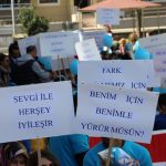 Ardından etkinliğe katılanlar için “farkındayız ” anlamını taşıyan el baskısı ile tüm katılımcılar ellerini boyayarak baskı yaptılar.