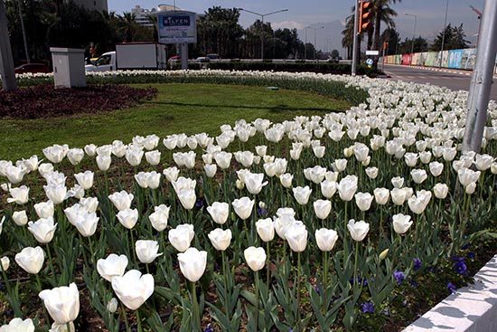 Antalya Büyükşehir Belediyesi Park ve Bahçeler Şube Müdürlüğü, caddelerin orta refüjleri ile kavşaklara 560 bin lale soğanı ile 100 bin sümbül dikimi gerçekleştirdi. 2 ay toprak altında kalan Lale ve sümbül soğanları filizlerini göstermeye başladı. Baharın müjdesini veren rengarenk laleler, Antalya’yı bambaşka bir görünüme kavuşturacak.