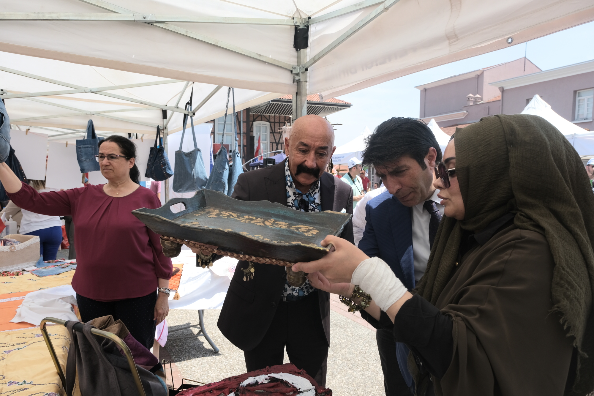 Maharetli ellerde yeniden kullanılabilir hale gelen atık malzemeleri dikkatle inceleyen Başkanvekili Fethi Yıldız, çevre konusunda hassasiyet gösteren tüm katılımcılara teşekkür etti.