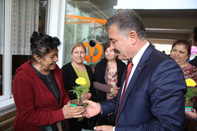 Toroslar İlçesi başta olmak üzere il merkezindeki tüm resmi ve sosyal kurumlara çiçek gönderen Belediye Başkanı Hamit Tuna, öncelikle huzurevini ziyaret etti.