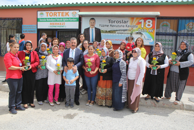 Huzurevi sakinlerinin tek tek elini öperek çiçek takdim eden ve anneler gününü kutlayan Belediye Başkanı Hamit Tuna daha sonra, Toroslar Belediyesi Mesleki Teknik Eğitim Kurslarında (TORTEK) eğitim gören bayanlara, Toroslar Kültür Sanat Kaldırımında vatandaşlara ve Belediye personeline de Toroslar Belediyesi’nin kendi fidanlığında yetiştirilen 50 bin adet çiçeği dağıttı.