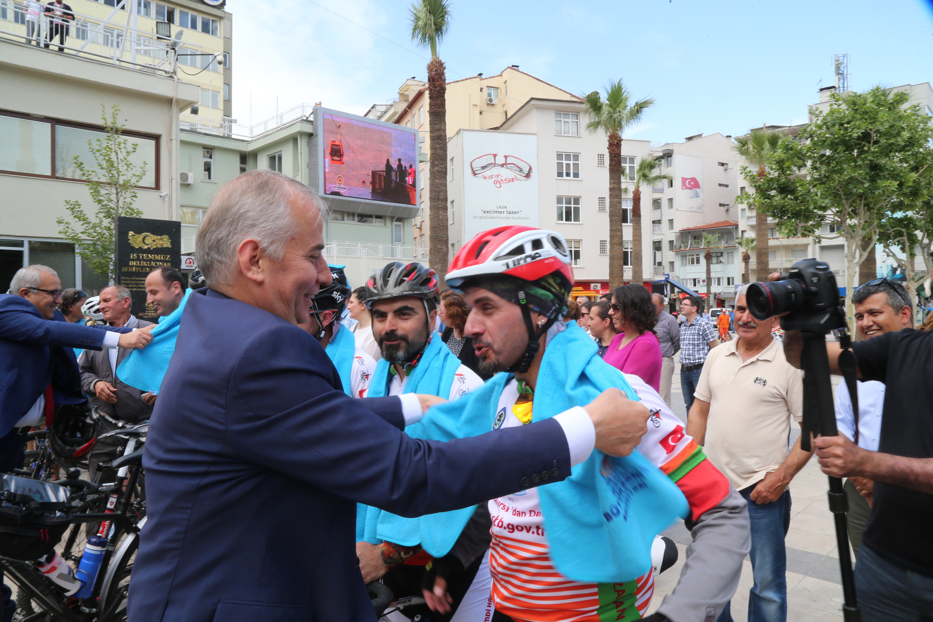 Bisikletçileri “Hoşgeldiniz” diyerek karşılayan Başkan Zolan, sporcuların boyunlarına Denizli havlusu astı. Başkan Zolan, karşılamanın ardından basın mensuplarına yaptığı açıklamada, Türkiye Sağlıklı Kentler Birliğinin 26. Olağan Meclis Toplantısı Denizli’de gerçekleştireceklerini belirterek, “Bunun öncesinde Bursa’dan yola çıkan sporcularımız 5 gün boyunca pedal çevirerek Denizlimize ulaştılar” dedi. Bisiklet binmenin hem çevreye olumsuzluk sağlamadığını, hem de spor yaptırdığını kaydeden Başkan Zolan, “Bursa-Denizli etabı burada sonlanmış oldu. İnşallah Sağlıklı Kentler Birliğinin Meclis Toplantısına da ev sahipliği yapacağız.Denizli Büyükşehir Belediyesi olarak birlik üyesi olmanın da mutluluğunu yaşıyoruz” diye konuştu.