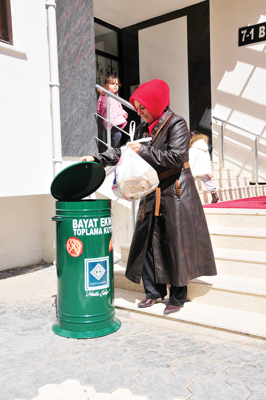 Hem dinen, hem de ekonomik anlamda bize üzüntü veren, bayat ekmeklerin israfını önlemek amacıyla, özel kutularda, bayat ekmekleri topluyor ve değerlendiriyoruz.