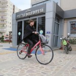 Bisiklet kullanımını teşvik etmek amacıyla önce belediye personeline bisiklet kullandırmayı hedeflediklerini vurgulayan Başkan Tarhan, “Şu anda bizim belediyemizde 10 bisikletimiz var ve personelimiz evrak getir götür işlerinde aktif bir biçimde bu bisikletleri kullanıyor. Biz hedefimizi her personelimize bir bisiklet verebilecek şekilde büyüttük. Yaptığımız bisiklet yolları nedeniyle Sağlık Bakanlığı bize 850 bisiklet verecek ve biz bu bisikletleri belediye personeline, muhtarlara ve vatandaşlara vereceğiz. Her müdürün, zabıtanın, personelin bisikleti olacak. Belediyedeki müdürlerimiz artık makam arabasının arka sağ köşesinden vazgeçsinler ve bisiklete binsinler istiyorum. En yaşlısından en gencine kadar herkes bisiklet kullansın istiyoruz.” diye konuştu.