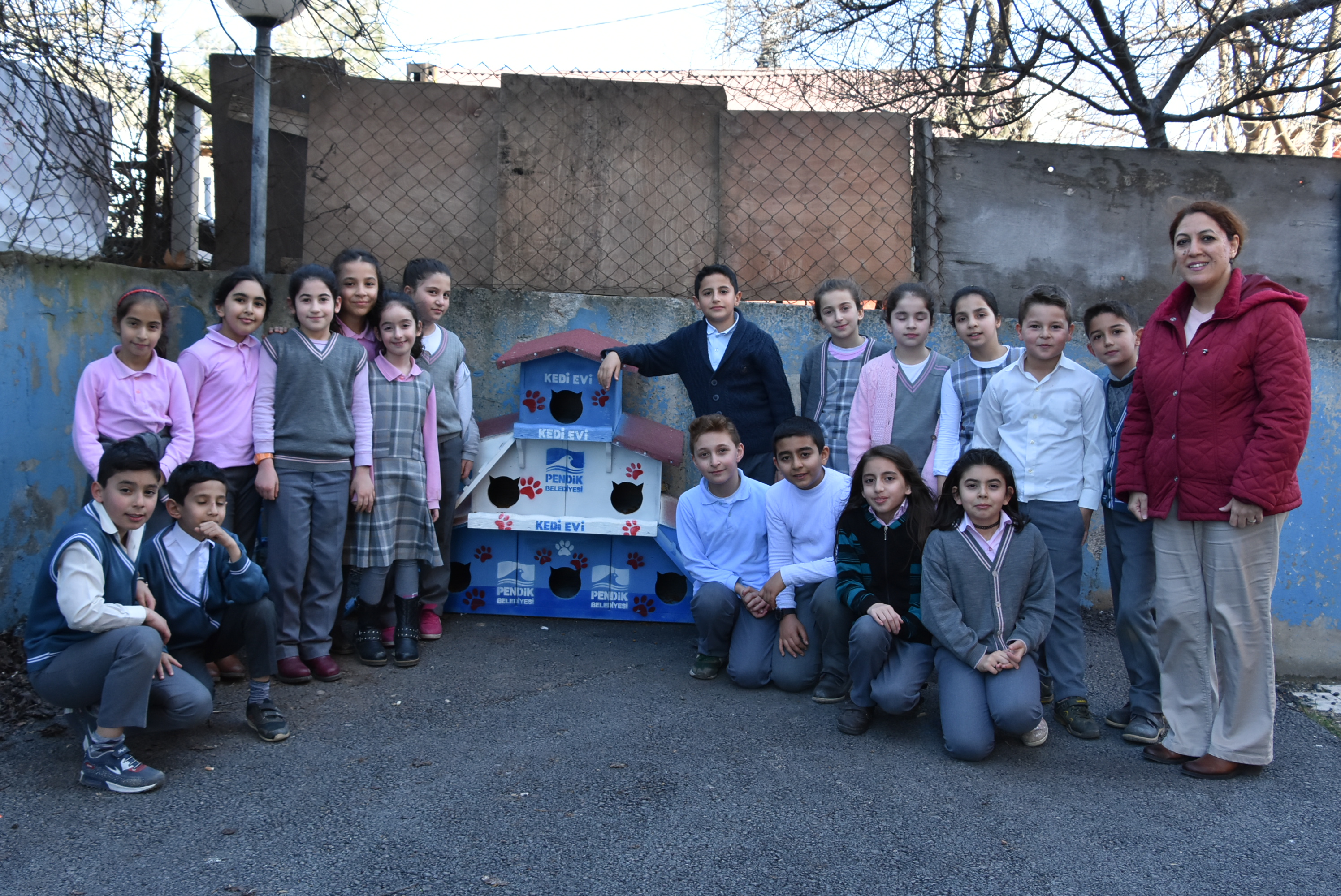 Kazım Karabekir İlkokulu 4C sınıfı öğrencileri, okul bahçelerinde besledikleri kedilerine yuva için Pendik Belediyesine mektup yazdı. Mektuplarını öğretmenleri Umut Coşkun aracılığıyla belediyeye ulaştıran öğrencilere Çevre Koruma ve Kontrol Müdürlüğü tarafından sürpriz yapıldı. Okul bahçesine uyacak şekilde üç katlı mini bir kedi evi inşa eden ekipler, öğrencilerin muradına ermesine vesile oldu.