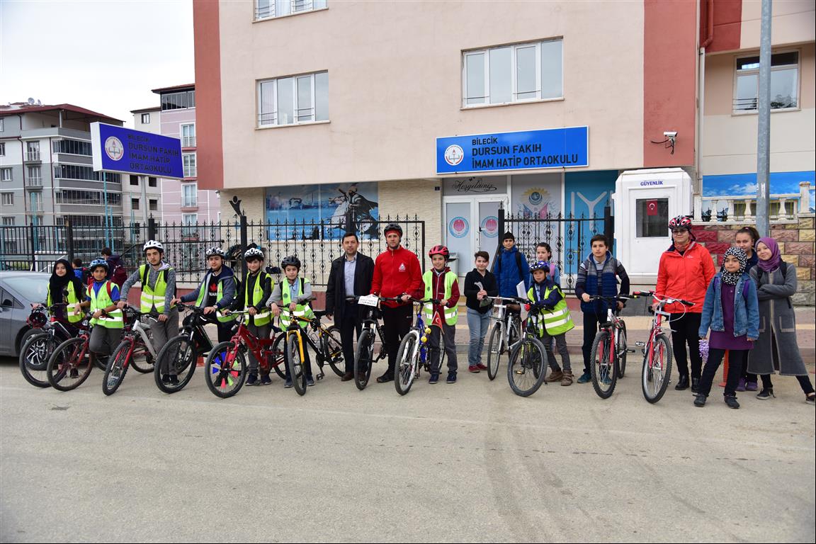 Bilecik Belediyesi, Türkiye Sağlıklı Kentler Birliği ve Bisikletliler Derneği Bilecik Temsilciliği işbirliğinde geçen yıllarda başlatılan ”Haydi Çocuklar Bisikletle Okula” etkinliği kapsamında öğrenciler Gençlik ve Spor İl Müdürlüğü önünde buluştu ve Dursun Fakih İmam Hatip Ortaokuluna bisiklet ile ulaşım sağladılar.Sağlıklı Kentler Birliği olarak şehir içi ulaşımında bisiklet kullanımının önemine değinmek, bisikletin etkin bir ulaşım aracı olduğu bilincini yaymak ve bisiklet kullanımını teşvik etmek amacıyla gerçekleştirilen “Haydi Çocuklar Bisikletle Okula” etkinliğinde çocuklar okullarına bisikletle gitti.Düzenlenen etkinliğe; Sağlıklı Kentler Birliği Koordinatörü Hülya Eçen Çalışkan, Bisikletliler Derneği Bilecik Temsilcisi Hakan Yavuz, Dursun Fakih İmam Hatip Ortaokulu Müdürü Sabri Turhan, öğretmen ve bisikletli öğrenciler katıldı.Program öncesi aktivite hakkında bilgi veren Sağlıklı Kentler Birliği Koordinatörü Hülya Eçen Çalışkan proje hakkında bilgi verirken, Bisikletliler Derneği Bilecik Temsilcisi Hakan Yavuz ise öğrencilere, bisiklet kullanımının faydaları ve trafikte uyulması gereken kurallarını anlattı.