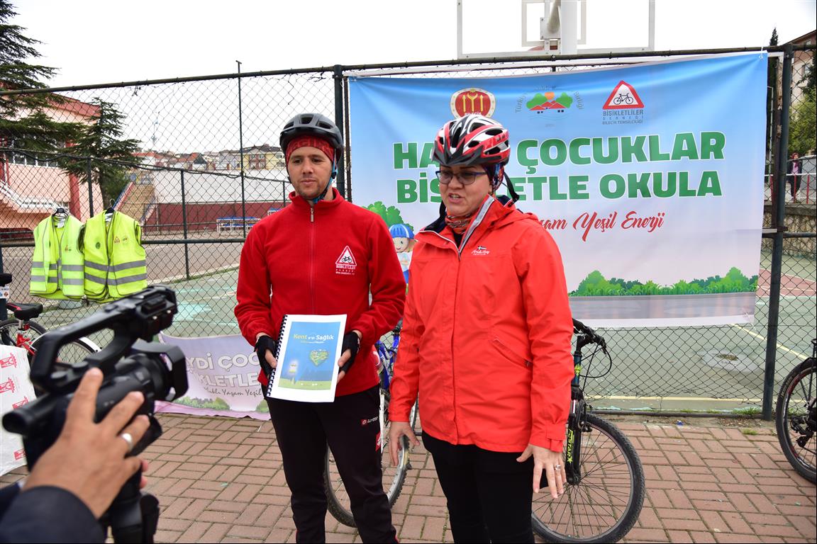 Bisiklet kullanımı ve faydaları ile trafik kurallarının olduğu broşürlerin dağıtıldığı etkinlikte Dernek Temsilcisi Hakan Yavuz, öğrencilere bisiklet kullanımı ve kurallarını anlattıktan sonra öğrenciler okullarına bisiklet ile ulaştı.