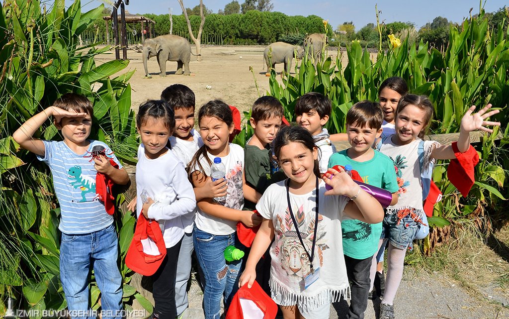 Aslandan zürafaya, fillerden ayıya kadar pek çok türü yakından tanıma fırsatı bulan çocuklar, hayvan figürlü tişörtleriyle dikkat çekti. Kendi elleriyle hazırladıkları bal kabaklı özel menüyle hem lemurları hem de fil ailesini besleme olanağı bulan minik öğrenciler, hayvanların beslenmeleri sırasında da çok keyifli anlar yaşadı. Çocuklar, fillerin barınağına önceden girip hazırladıkları yemekleri alana bıraktı; sonra da fil ailesinin nasıl yemek yediğini gördü. “İzmir” isimli fili sloganlarla karşılayan çocuklar, lemurları elleriyle beslerken de hem heyecanlandı hem de çok eğlendi.