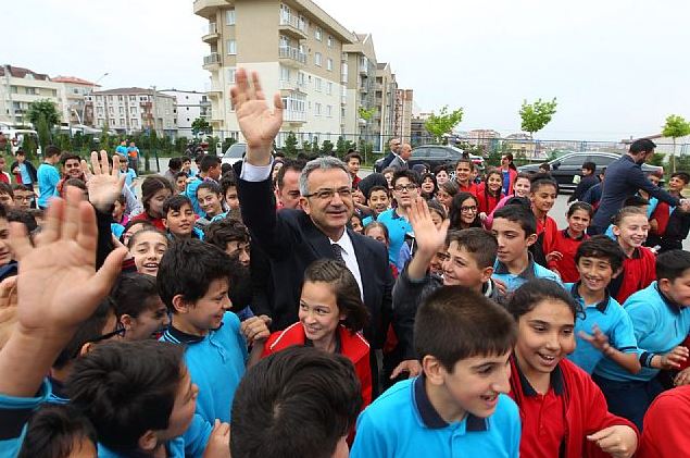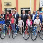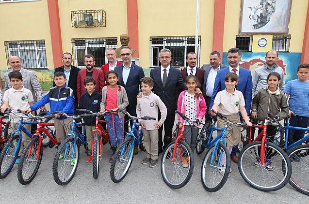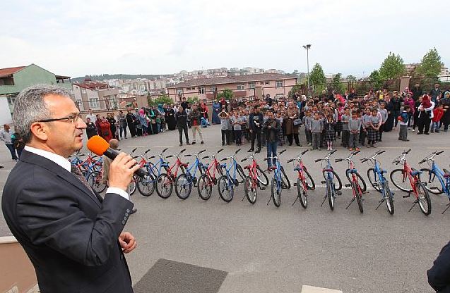Gebze Belediyesi tarafından beşinci sınıf ve dereceye giren öğrencilere 8 bin 500 adet bisikletin dağıtımı okullarda sürüyor. Dağıtım törenlerine katılan Gebze Belediye Başkanı Adnan Köşker çocuklardan bisiklet sürerken dikkatli olmalarını istedi.