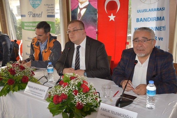 Bölgemizde yenilenebilir enerjinin arttırılması konusunda çalışmaların olduğunu belirten panelistler, vatandaşların sorularının ardından Belediye Meclis Üyesi Celile Gezen ve Balıkesir Milletvekili Ahmet Akın tarafından festivalin simgesi olan plaketleri panelistlere takdim ettiler.
