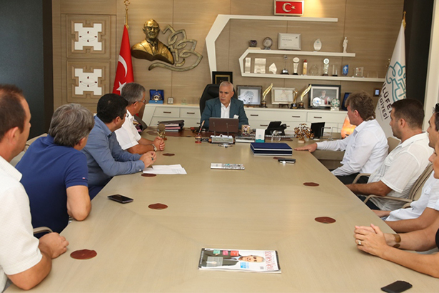 Bozbey, Balkan Mahallesi’ndeki Ali Durmaz Stadyumu’nun da revize edileceğini söyledi. Nilüfer Belediye Başkanı Mustafa Bozbey, Balkan Mahallesi’nde faaliyet gösteren Balkan Spor Kulübü’nün yeni yönetimini Halk Evi’nde bulunan makamında ağırladı. Hasan Hacıarabacı’nın başkanlığını üstlendiği Balkan Spor Kulübü’nün yeni yönetimine başarılar dileyen Başkan Bozbey, Nilüfer’in spor kenti olması için mahalle ve amatör kulüplerine sürekli destek verdiklerini kaydetti. Balkan Mahallesi’nde bulunan Ali Durmaz Stadyumu’nun da revize edileceğini söyleyen Bozbey, tesisin mahallenin tamamına hizmet eder duruma geleceğini belirtti. Başkan Bozbey, “Ali Durmaz Stadyumu ile ilgili son aşamaya geldik. Batı tarafında yapacağımız tribünde kot farkı nedeniyle boşa çıkacak katlar var. Bu katlarda masa tenisi, squash, çocuklara yönelik gençlik merkezi ve kadınlara yönelik alanlar oluşturacağız. Ali Durmaz Stadyumu’nu, amatör spor kulüplerinin alt yapı merkezi haline getirmek istiyoruz” dedi. Ali Durmaz Stadyumu’nda bir çok spor kulübünün antrenman yapma imkanı bulacağını da kaydeden Bozbey, Balkan Spor Kulübü’nün de bu imkanlardan yararlanacağını söyledi.