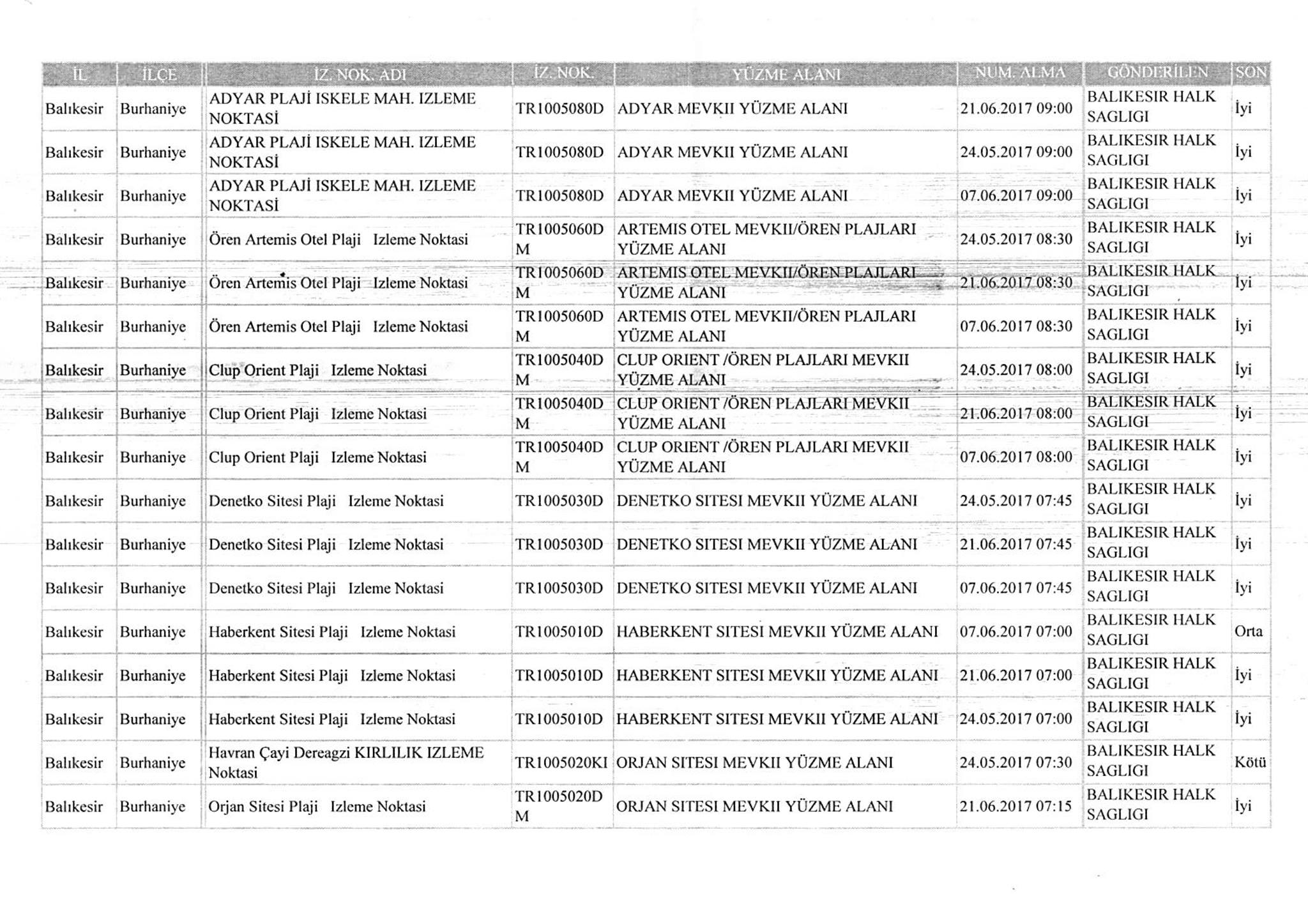 Burhaniye’deki yüzme alanlarında, vatandaşların güvenli bir şekilde denize girebilmesi adına, Balıkesir Halk Sağlığı Müdürlüğü tarafından yapılan taramalar sonucunda, 24 Mayıs 2017-21 Haziran 2017 tarihleri arasında alınan numeneler Burhaniye Denizlerinin temizliğini onayladı.