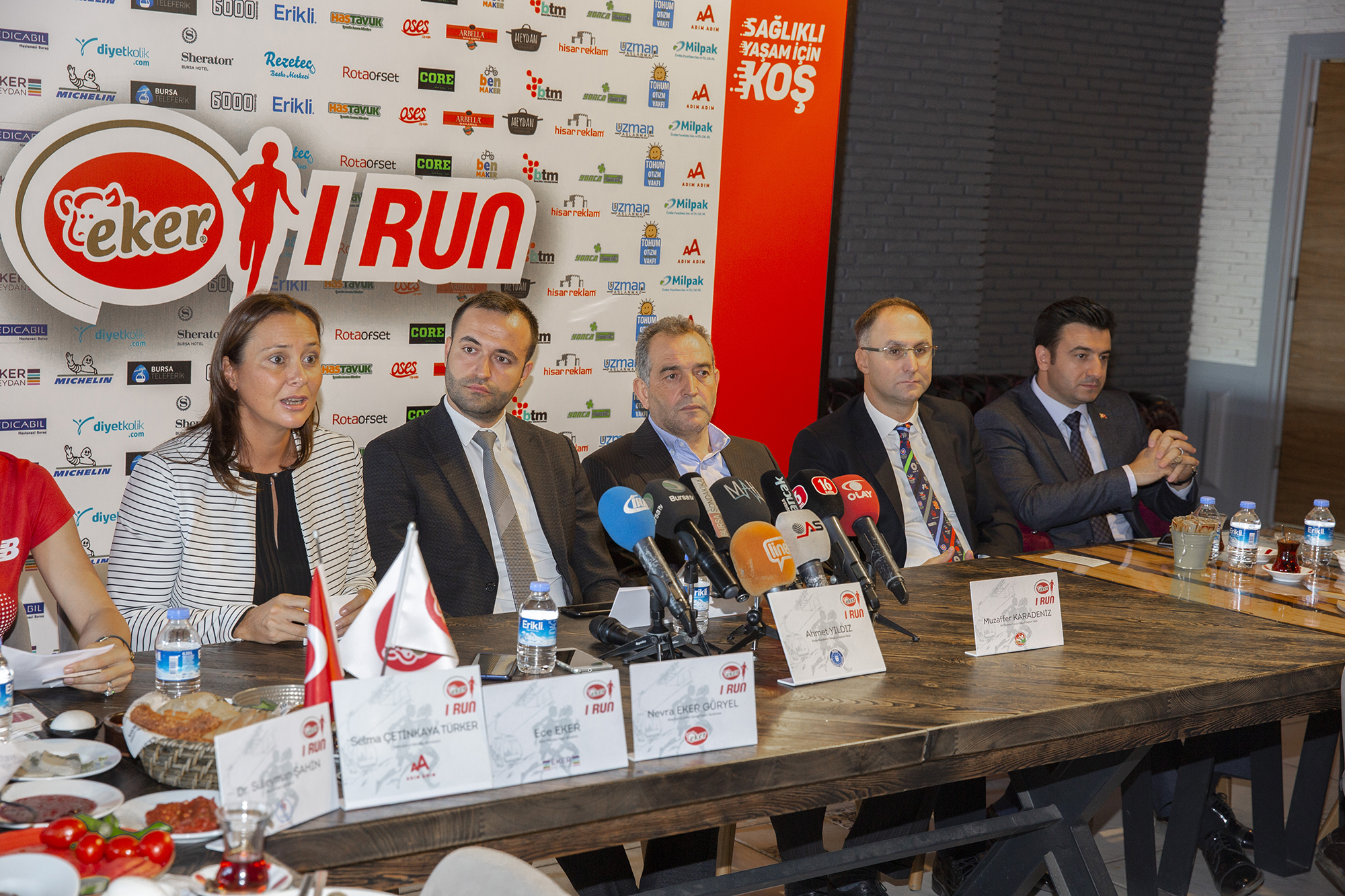 Eker’in organizasyonunda, Gençlik ve Spor Bakanlığı, Türkiye Atletizm Federasyonu ve Bursa Büyükşehir Belediyesi’nin destekleriyle gerçekleşen ‘5. Eker I Run Yol Koşusu’nun tanıtım toplantısı Eker Meydanı’nda yapıldı. Toplantıya Bursa Büyükşehir Belediyesi Başkanvekili Ahmet Yıldız, Gençlik ve Spor İl Müdürü Süleyman Şahin, Türkiye Atletizm Federasyonu Başkanvekili Muzaffer Karadeniz, Eker Süt Ürünleri Genel Müdürü Yardımcısı Nevra Eker Güryel, Eker Meydan Koordinatörü Ece Eker ve Adım Adım Gönüllü Antrenörü Selma Çetinkaya Türker katıldı.