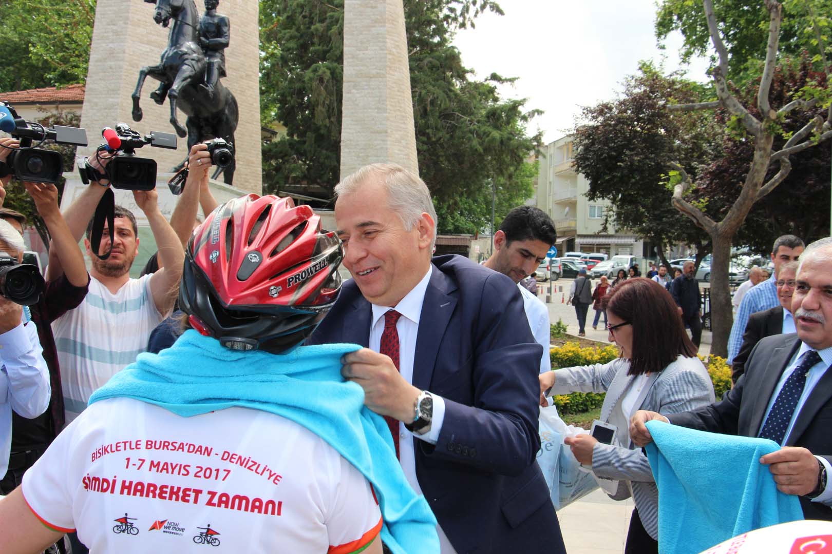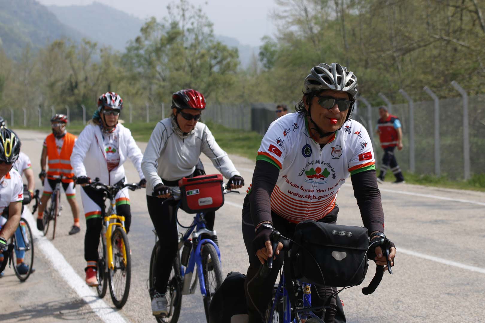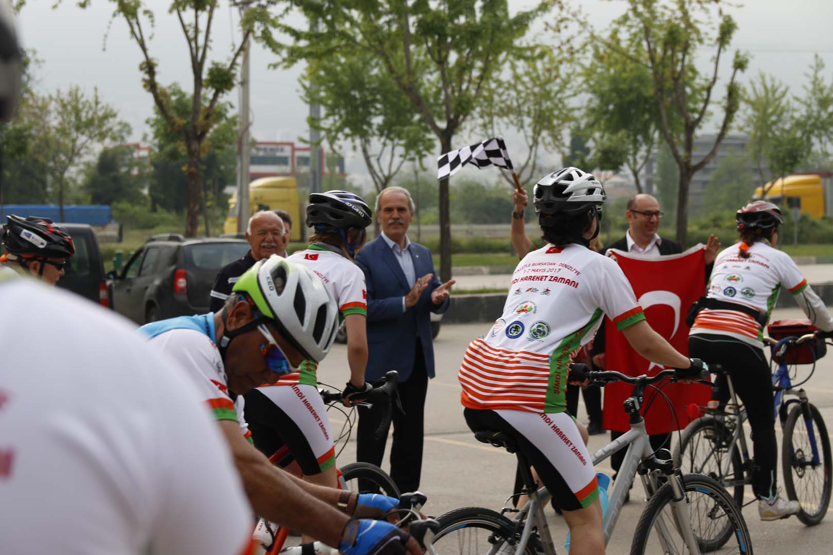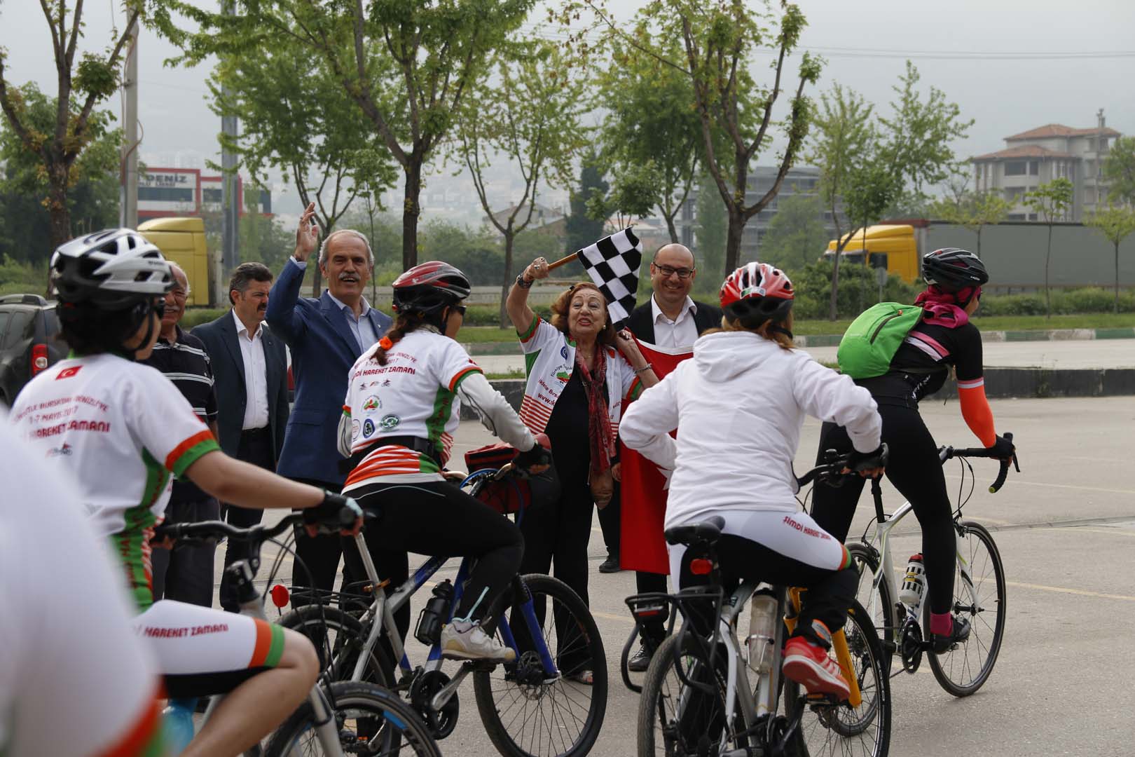 Bursa’dan Denizli’ye bisiklet turunun startını Bursa Büyükşehir Belediyesi ve Sağlıklı Kentler Birliği Başkanı Recep Altepe ile birlikte Bursa Büyükşehir Belediyesi Eski Başkanı ve Sağlıklı Kentler Birliği Danışma Kurulu Üyesi Erdem Saker ile 1928 yılında bizzat Atatürk’ün direktifleriyle 28 bisikletçinin başında Edirne’den Ardahan’a giden Yüzbaşı Daniş Karabelen’in kızı emekli TRT spikerlerinden Özcan Atamert verdiler.