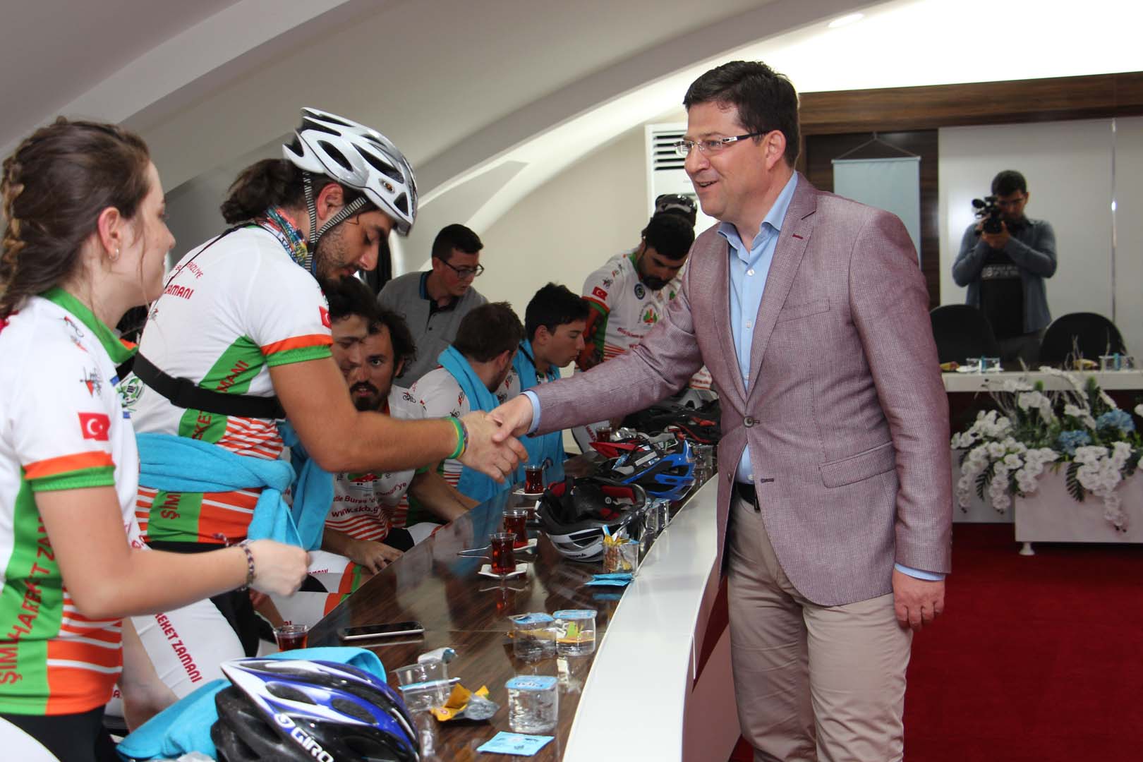 Belediye ziyaretleri esnasında şehir girişlerinde birçok bisikletli öğrenci ve sivil toplum kuruluşları ekibimizi karşılayarak destek verdiler.