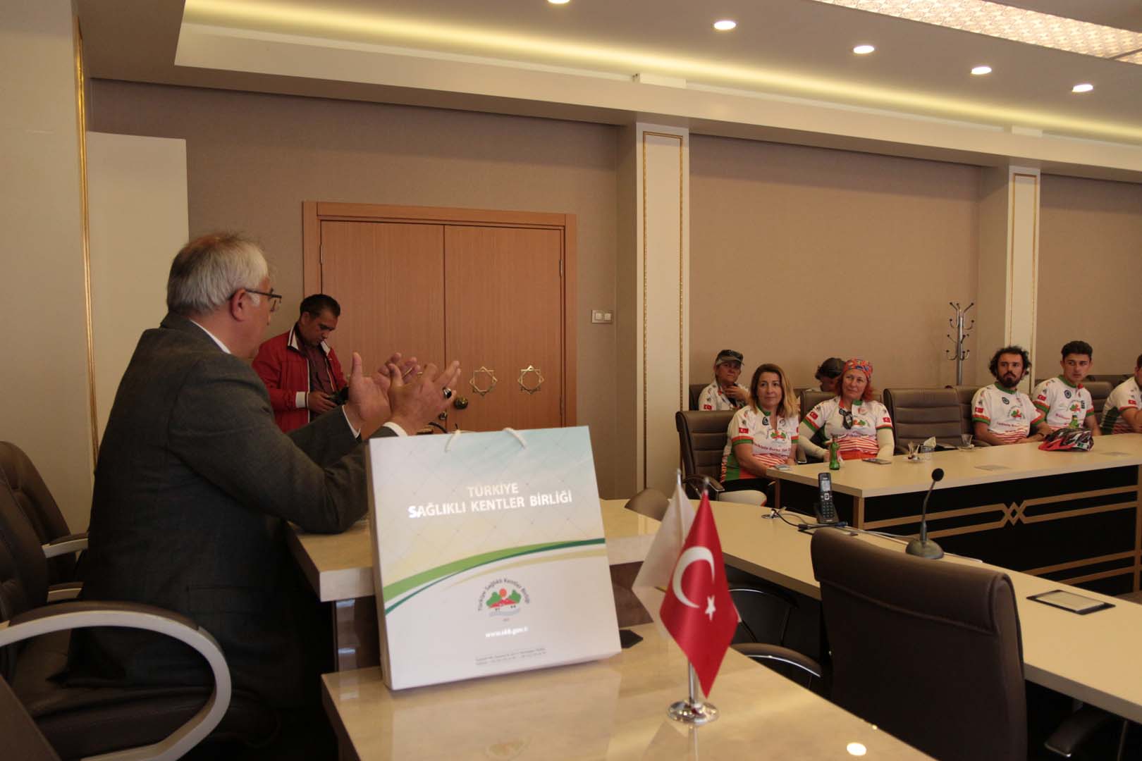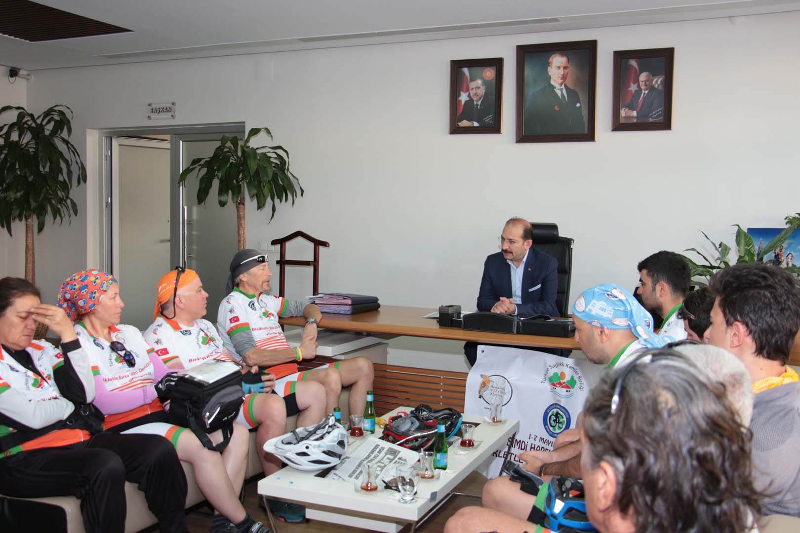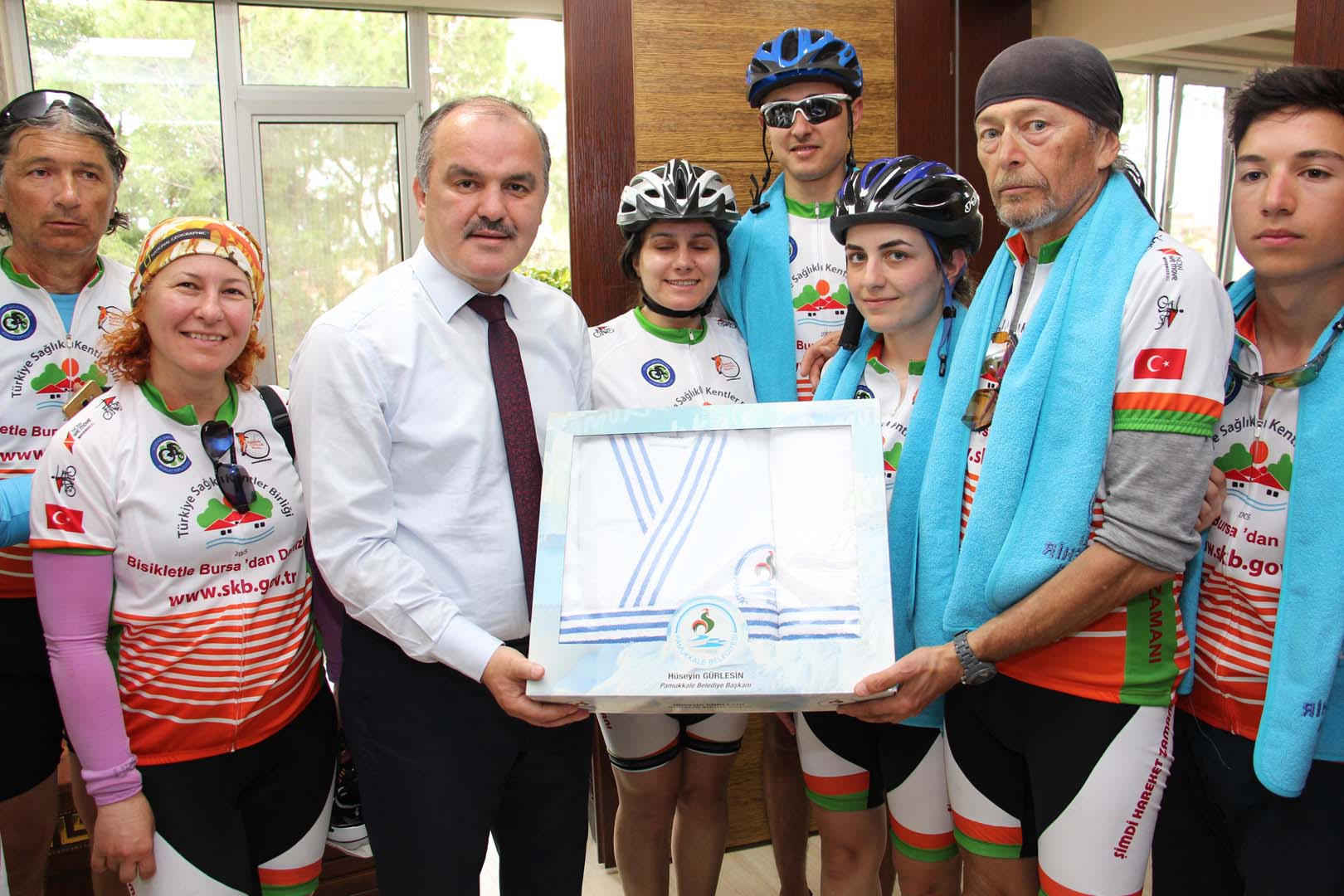 Bisikletçiler startın ardından sırasıyla Harmancık Belediye Başkanı Mustafa Çetinkaya, Tavşanlı Belediye Başkanı Mustafa Güler, Çavdarhisar Belediye Başkanı Halil Başer, Gediz Belediye Başkanı Mehmed Ali Saraoğlu, Uşak Belediye Başkanı Nurullah Cahan, Merkezefendi Belediye Başkanı Muhammet Şubaşıoğlu, Pamukkale Belediye Başkanı Hüseyin Gürlesin ve Denizli Büyükşehir Belediye Başkanı Osman Zolan’ı ziyaret ederek, bisiklet turunun amacı ve Sağlıklı Kentler Birliği çalışmaları konularında bilgiler verdiler.