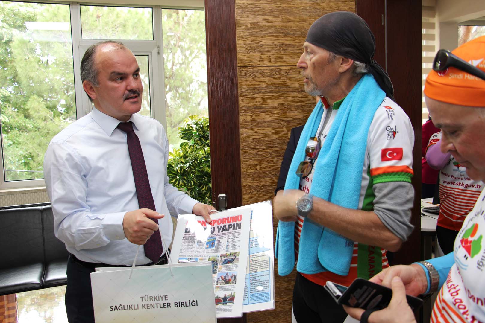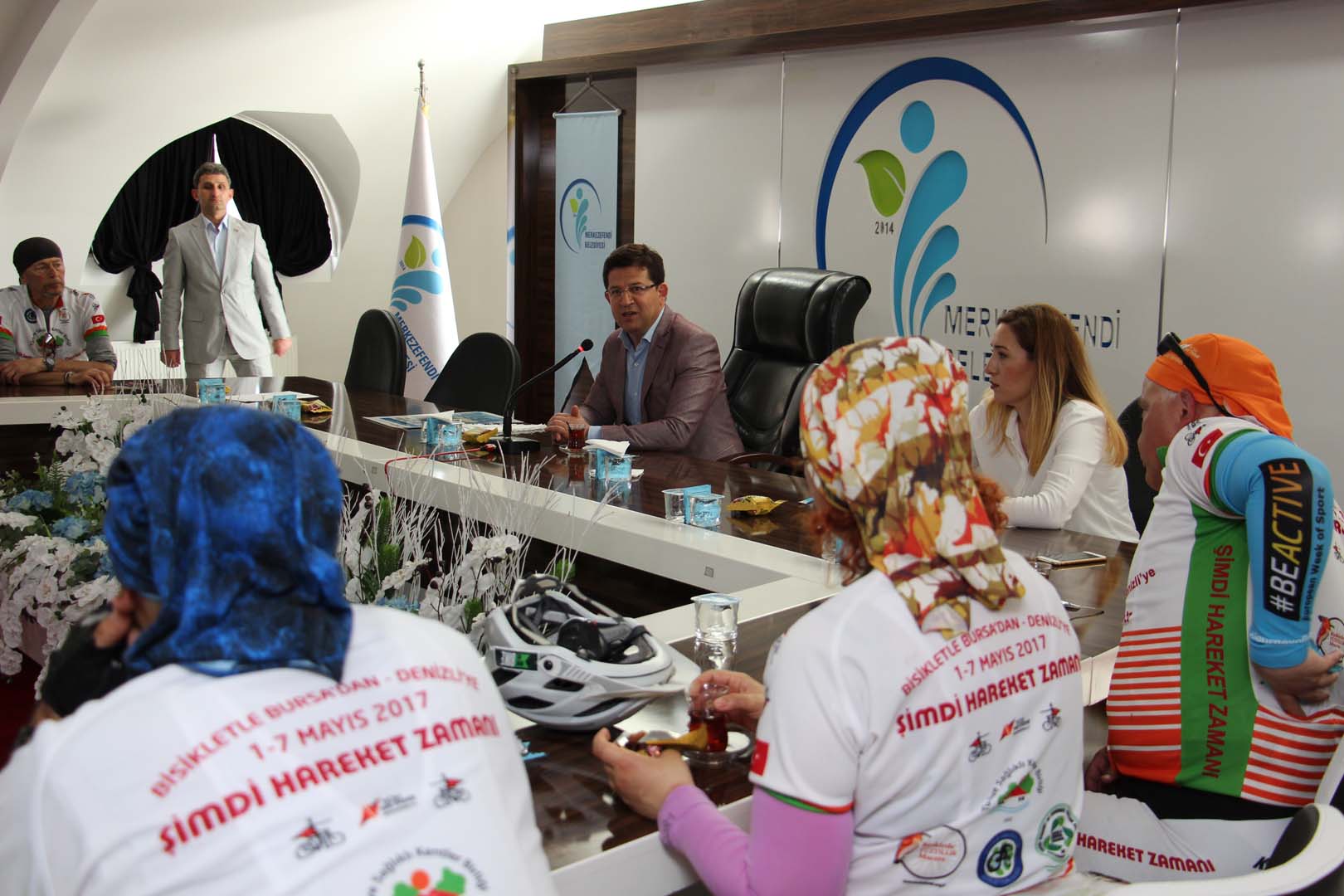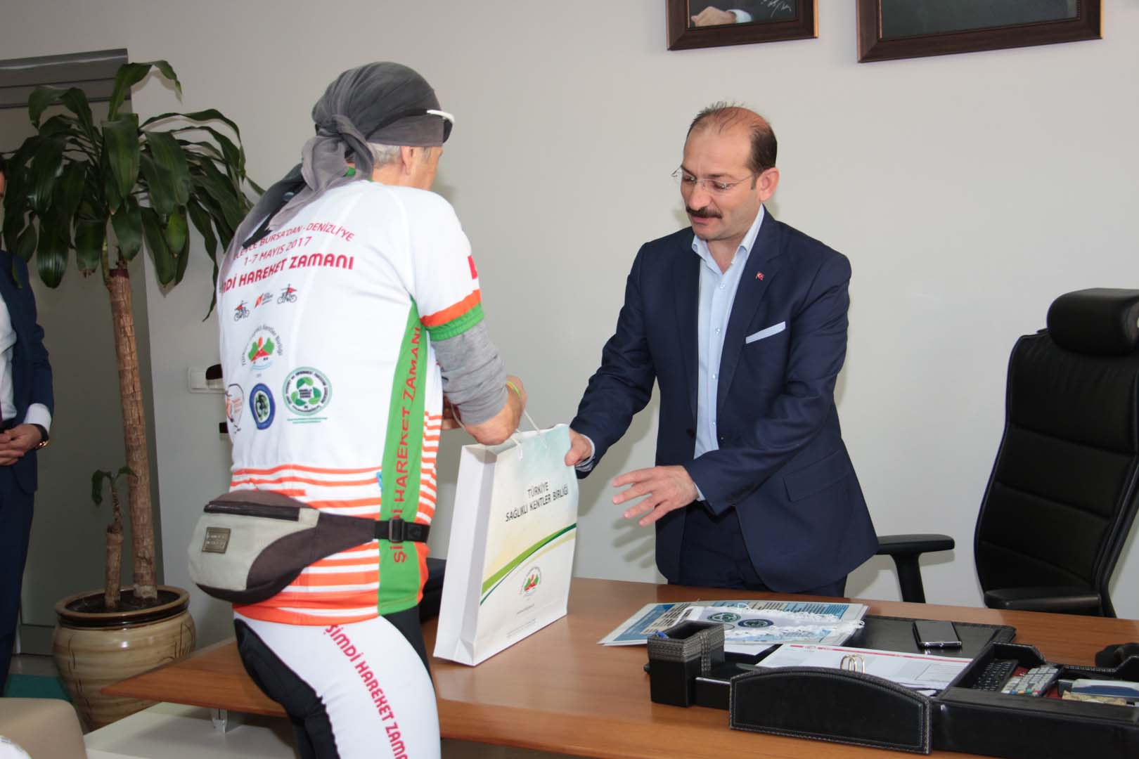 Bisikletçiler startın ardından sırasıyla Harmancık Belediye Başkanı Mustafa Çetinkaya, Tavşanlı Belediye Başkanı Mustafa Güler, Çavdarhisar Belediye Başkanı Halil Başer, Gediz Belediye Başkanı Mehmed Ali Saraoğlu, Uşak Belediye Başkanı Nurullah Cahan, Merkezefendi Belediye Başkanı Muhammet Şubaşıoğlu, Pamukkale Belediye Başkanı Hüseyin Gürlesin ve Denizli Büyükşehir Belediye Başkanı Osman Zolan’ı ziyaret ederek, bisiklet turunun amacı ve Sağlıklı Kentler Birliği çalışmaları konularında bilgiler verdiler.