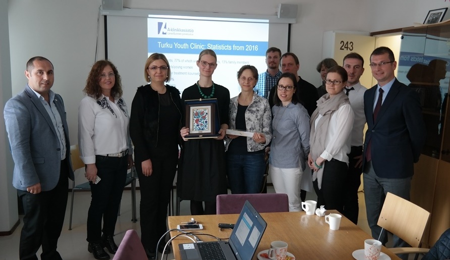 Yerel yönetimlerin ‘alkol ve madde bağımlılığına yönelik faaliyetlerde’ aktif rol aldığı Finlandiya’da, hem koruyucu önleyici çalışmalar hem müdahale hem de zarar azaltımına yönelik çalışmalar Bursa grubu tarafından yerinde incelendi. Toplam nüfusu 310 bin olan Turku şehrinde özellikle alkol ve madde bağımlılığının yaygın olduğu, ortalama uyuşturucu madde bağımlılığın yüzde 17, alkol bağımlılığının ise yüzde 50 civarında olduğu belirtildi. Yıllık bütçesinden alkol ve madde bağımlılığı için 13 milyon Euro ayıran Turku Belediyesi’nde yatılı tedavi, zarar azaltımı ve ayaktan danışmanlık merkezlerinin tek elden yürütüldüğü, 7’den 70’e bağımlılık alanında herkesin hizmet alabileceği yerler bulunuyor. Finlandiya’da özellikle madde kullanımının ilk sebebi olarak aile içi ilişkiler ve aile bağları gösteriliyor. Turku Belediyesi yetkilileri, yıllık 15 yaş üstü bir kişinin 999 Euro’yu alkol için harcadığını belirtiyor. Finlandiya’da alkol ve madde bağımlılığının sadece kullanıcıların değil toplumunun tamamını ilgilendiren bir sorun olduğu ve çözümü konusunda her kurumun yapacaklarının bulunduğu, bu nedenle kurumlar arası ilişkilerin önemli olduğu ifade edildi. Özellikle koruyucu çalışmalar kapsamında okullarda öğrenci ve öğretmen odaklı çalışmaların, projelerin uygulandığı belirtiliyor.