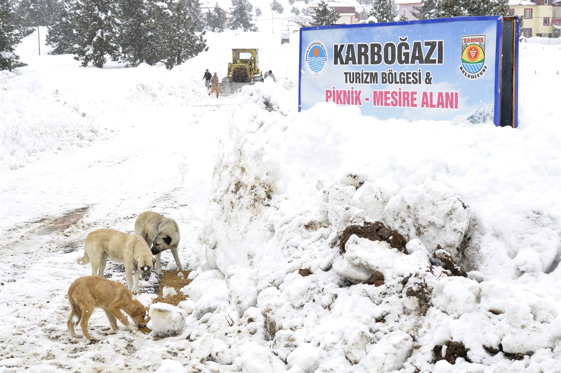 Mersin’in yüksek kesimlerinde kar yağışı ve soğuk hava şartlarının etkili olmasının ardından Mersin Büyükşehir Belediyesi Veteriner Hizmetleri Dairesi Başkanlığı ekipleri tarafından yabani hayvanlar için başlatılan çalışmalar kapsamında tilki, çakal, kanatlı yabani hayvanlar ve yüzden fazla yılkı atı için Karboğazı mevkiine yem bırakıldı.