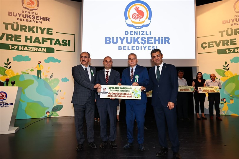 Sıfır atık hedefiyle çalışmalarını sürdüren Denizli Büyükşehir Belediyesi, Türkiye Çevre Haftası’nın dolu dolu kutlanması için hazırladığı programlara devam etti. Bu kapsamda, Büyükşehir Belediyesi çevre temizliği ve sıfır atık konusunda farkındalık yaratmak için il genelinde 113 gönüllü okulun katıldığı sıfır atık yarışmasında dereceye giren okullar için ödül töreni düzenledi. Büyükşehir Belediyesi Nihat Zeybekci Kongre ve Kültür Merkezi’nde yapılan programa Büyükşehir Belediye Başkanı Osman Zolan, Genel Sekreter Yardımcısı Seval Gebeş, Çevre, Şehircilik ve İklim Değişikliği Müdürü Mehmet Fatih Namık Öztürk, Milli Eğitim Müdürü Süleyman Ekici, ünlü hava durumu sunucusu Bünyamin Sürmeli ile öğrenciler ve davetliler katıldı. Milli Eğitim Müdürü Ekici törenin açılış konuşmasında Büyükşehir Belediyesinin destekleriyle başlatılan “Minik Kalpler Can Dostlarımız İçin Atıyor” projesi ile çocukların hayvan sevgisi ve çevre bilinciyle yetişmesi için çok önemli bir adım atıldığını söyledi.