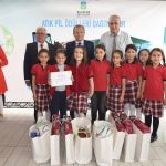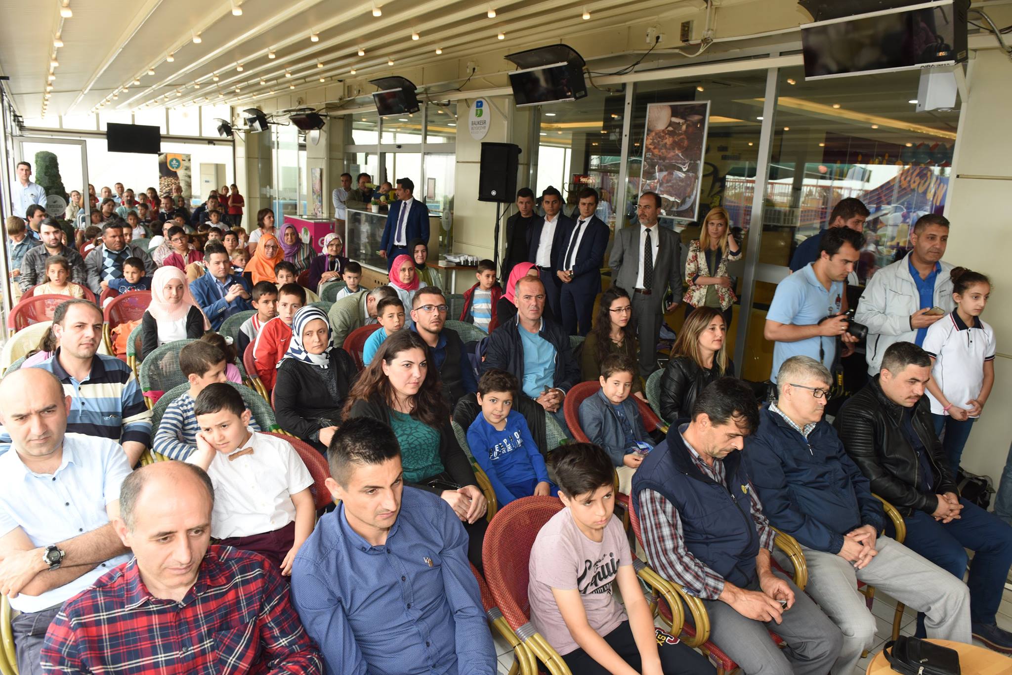 Başkan Uğur konuşması ardından Büyükşehir Belediyesi Daire Başkanları ile birlikte ödül kazanan okul ve öğrencilere hediyelerini takdim etti. Başkan Uğur, hediye kazananlar ile hatıra fotoğrafı çektirdi.