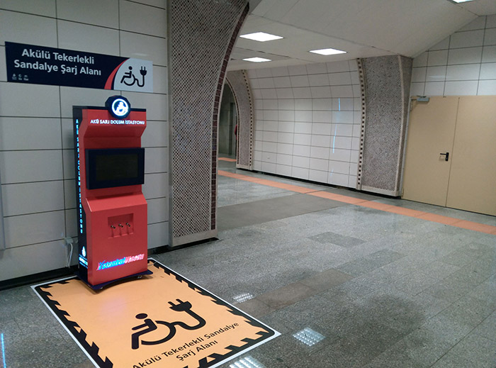 İstanbul Büyükşehir Belediyesi  engelli vatandaşların gündelik hayata entegre olabilmeleri için yeni bir uygulamaya daha imza attı. İstanbul Ulaşım AŞ tarafından yapılan yeni çalışma ile engelli erişiminde kolaylık sağlaması için metro istasyonlarına ‘akü şarj üniteleri’ yerleştirildi.