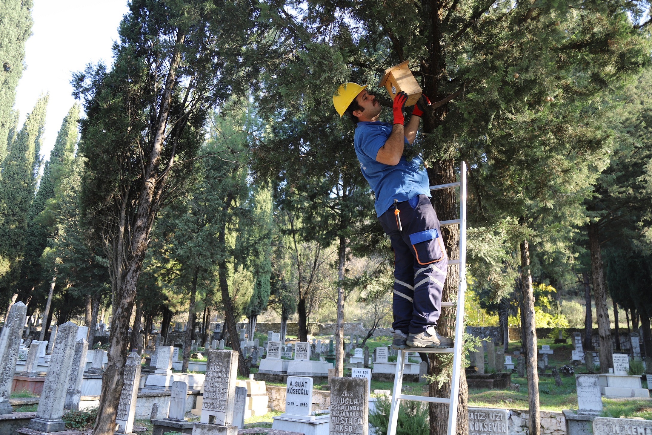 Muğla Büyükşehir Belediyesi, böcekçil kuşların yuva yapmasına imkân sağlayarak Çam ağaçlarına zarar veren Çam Kese böceğiyle mücadele etmek ve yuvasız kuşlara yuva temin etmek amacıyla sorumluluğunda bulunan mezarlık alanlarına astığı 458 kuş yuvası sonucunda bölgede kuş popülasyonunun arttığı gözlemlendi.