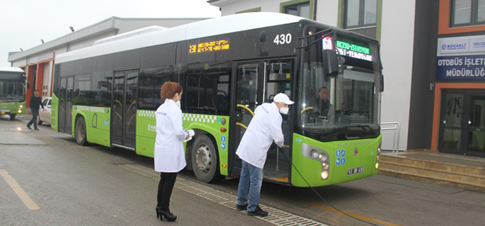 Kocaeli Büyükşehir Belediyesi Toplu Taşıma Dairesi Başkanlığı tarafından vatandaşların daha sağlıklı ve kaliteli seyahat edebilmeleri için çalışmalar devam ediyor. Bu kapsamda araçlarda teknolojinin en gelişmiş yöntemleriyle dezenfeksiyon çalışmaları gerçekleştiriliyor.