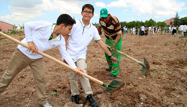 Fidan dikme etkinliği son olarak Ahlatlıbel Mahallesi’nde düzenlendi. Sokullu Mehmet Paşa Anadolu Lisesi ile Doğa Koleji Ortaokulu’ndan yaklaşık iki yüz öğrencinin katılımıyla gerçekleşen etkinlikte 245 adet çam fidanı toprakla buluştu. Öğrencilerin elleriyle can bulan fidanların dikimi sırasında Çankaya Belediyesinin emekçileri de çocukları bilgilendirerek dikimin nasıl yapılacağı konusunda yol gösterdi. Genç öğrencilerin isimlerinin yazılı olduğu küçük birer plakanın da fidanların üzerine yerleştirildiği etkinlikte, çocuklar toprakla uğraşmanın keyfini yaşadı.