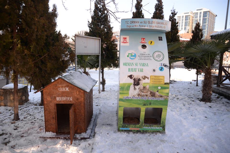 Bilecik Belediyesi Sokak Hayvanları Tedavi ve Rehabilitasyon Merkezi’nde can dostlarımızı en iyi şekilde ağırlayan Veteriner İşleri Müdürlüğü ekipleri, kulübelere mama ve su bıraktı.