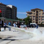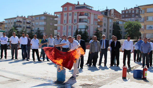 Tüpgaz, benzin ve diğer yanıcı malzemeler ile başlayan ani yangınların nasıl söndürülmesi gerektiğine ve alınacak güvenlik önlemlerine dair bilgiler, personelin de katıldığı tatbikatlarla daha kalıcı hale getirildi. Yaklaşık bir haftadır ilçe genelindeki zabıta kontrol noktalarında ve özellikle pazar yerlerinde yapılan eğitim ve tatbikatlarda personele, değişik kaynaklı yangınlara doğru müdahale biçimi, acil ve profesyonel söndürme ekipmanı olmayan durumlarda eldeki malzemeyle yangına müdahale etme yöntemleri ve söndürmede alınacak kişisel güvenlik önlemleri de anlatıldı.