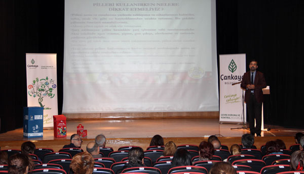 Çankaya Belediyesi, Tüketici ve Çevre Eğitim Vakfı (TÜKÇEV) ve Taşınabilir Pil Üreticileri ve İthalatçıları Derneği (TAP) işbirliğiyle Çağdaş Sanatlar Merkezi’nde düzenlenen eğitime, Çankaya’nın değişik bölgelerindeki okullarda görevli öğretmenler katıldı.