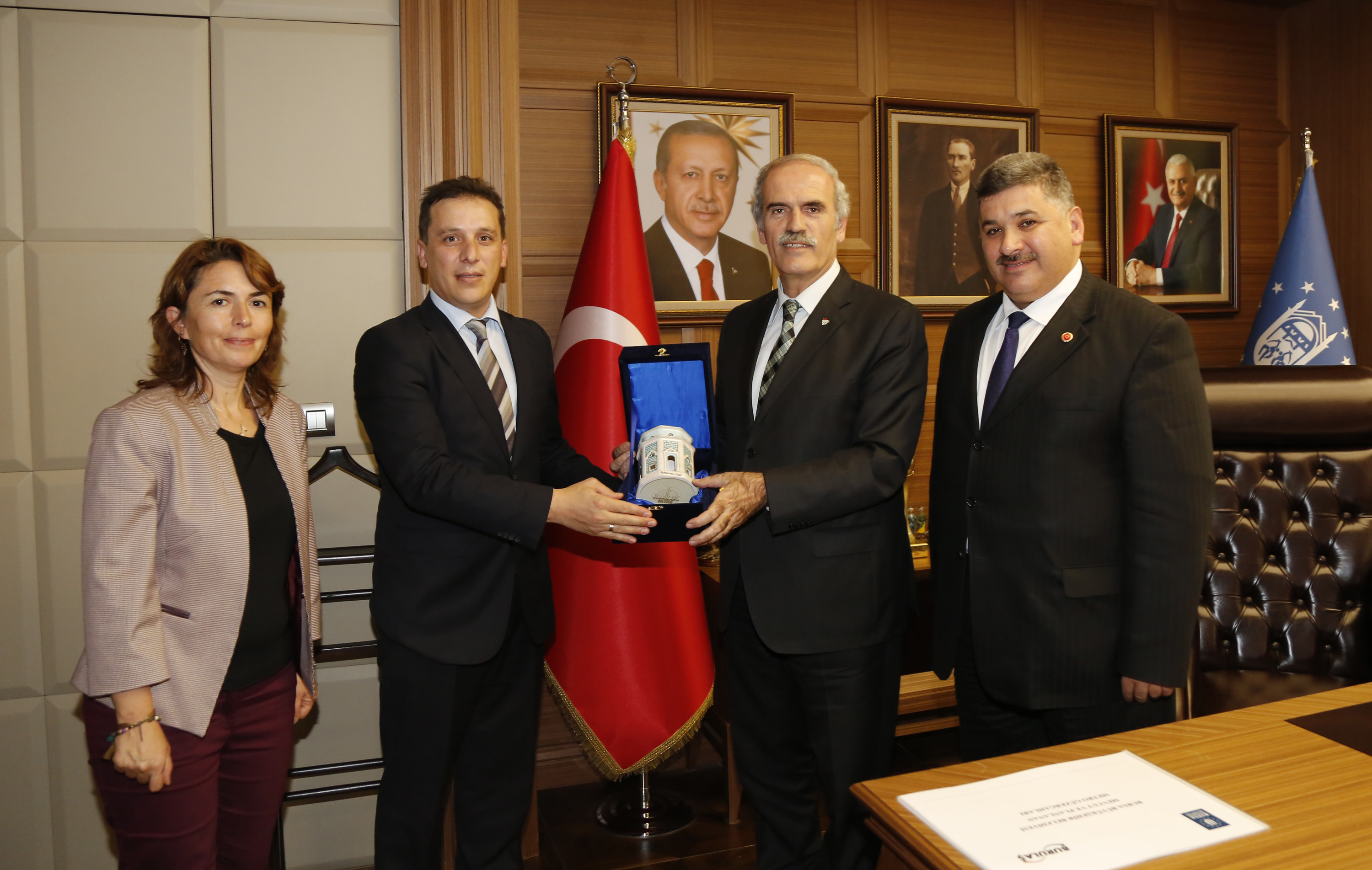 Öte yandan Başkan Altepe, Keles Belediye Başkanı Mehmet Teke ve İnşaat Müteahhitleri Sanayici ve İş Adamları Derneği (İMSİAD) Yönetim Kurulu Üyeleri ile de görüştü. Bursa’nın kentsel dönüşümde attığı adımların önemine değinen Başkan Altepe, 1070 mahalleli şehirde kentsel dönüşüm faaliyetleriyle şehrin kalitesinin ve değerinin arttığına işaret etti. Şehir merkezindeki dönüşümün önemini vurgulayan Başkan Altepe, “Kentin merkezindeki yıpranmış bölgeler dönüşerek en güzel ve kaliteli konut bölgeleri olmalı. Dönüşümü İMSİAD gibi kuruluşlar yapacak, bize düşen de destek vermek olacak. Biz her zaman “Önce insan” dedik, insanlarımızın ihtiyacını önemsedik ve sonucunda da güzel uygulamaları görüyoruz” dedi. İMSİAD’ın çalışmalarıyla Bursa’nın kentsel dönüşümüne imzasını atacağına inandığını belirten Başkan Altepe, ziyaretin sonunda konuklarına Yeşil Türbe çinisi hediye etti.