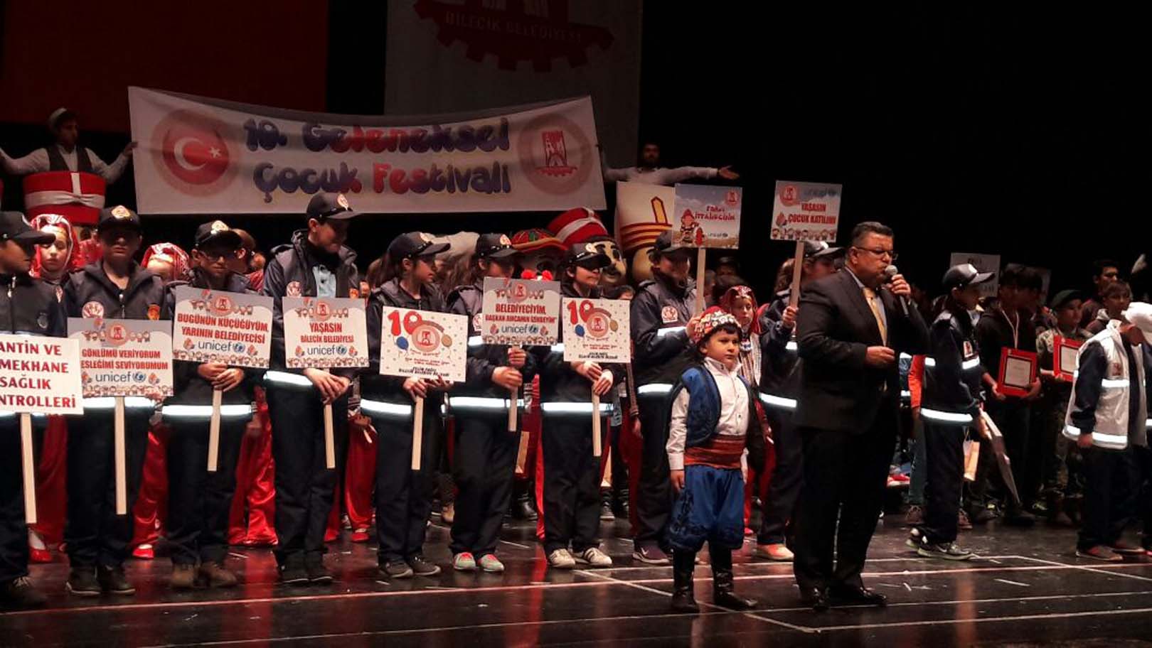 ”Bilecik Belediyesi Çocuk Akademisinin ilk gönüllülerine belirlenen zaman zarfında gerekli eğitimleri verdik. Bilecik Belediyesi Çocuk Akademisinin bütün bireyleri, ilk önce ”Belediyeciyim Başkan Amcamın İzindeyim” sloganı etrafında buluştu. Diğer yandan; ”Sağlıklı Yaşam Sağlıklı Bilecik”, ”Kontrol Ediyorum Sağlığımızı Koruyorum”, ”Gelecek Sağlıkla Şekillenecek”, sloganları çerçevesinde; gönüllü ve fahri zabıta oldular, gönüllü çevreci/ ekolog oldular. Biliyorsunuz, Bilecik Belediyesi, daha önce, UNİCEF ve İç İşleri Bakanlığımızın yapmış olduğu çalışma ile Çocuk Dostu Şehir olarak seçilmişti. Bu anlamda Bilecik Belediyesi de çocuk hakları başta olmak üzere çocuklarımıza yönelik güzel çalışmalar ortaya koydu. Bu proje ile çocuklarımızın topluma ve sosyal yaşama katılımlarını sağlamak istedik. Öğrencilerimiz faaliyetleri kapsamında Zabıta Müdürlüğümüz ile birlikte okul kantinlerini ve yemekhaneleri denetleyecekler, İtfaiye Müdürlüğümüz ile birlikte binaların güvenliğini güvenliğini denetleyecekler, binalardaki yangın sistemlerini denetleyecekler. Gönüllü çevrecilerimiz/ Ekologlarımız ise çevremizin korunması noktasında insanlarımızı uyaracak ve bu konuda bilgilendirecekler. Okullardaki çevrecilik faaliyetlerine katkı sağlayacaklar. Tüm Çocuklarımız bu anlamda alanları ile ilgili eğitimler aldılar ve görev sahalarında güzel çalışmalar sergileyecekler. Her bir öğrencimiz faaliyetleri boyunca; ”Gönlümü Veriyorum, Mesleğimi Seviyorum”; ”Üniformamla Gurur Duyuyorum” , ”Yaşasın Bilecik Belediyesi ve Unıcef ”, ”Yaşasın Çocuk Katılımı” sloganları ile faaliyetlerini sürdürecekler.’ ‘şeklinde konuştu.