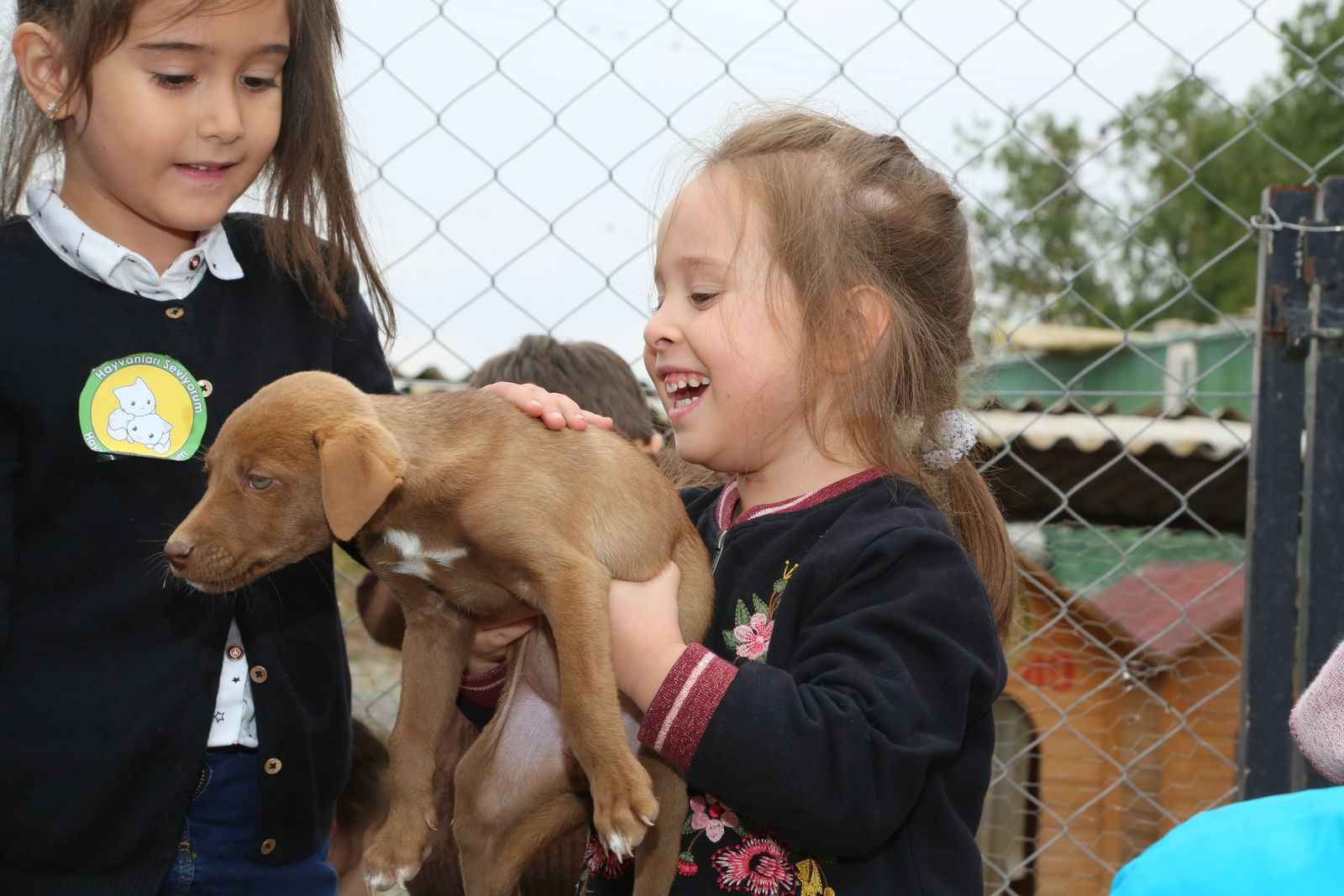 Ziyaretleri sırasında barınaktaki hayvanlarla keyifli vakitler geçiren öğrenciler, en çok da yavru hayvanları sevdi.