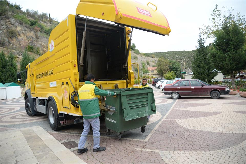 Mahallelerdeki çöp konteynerlerinin en son teknoloji kullanılarak, dezenfekte eden konteyner yıkama aracı ile konteynerler hem hızlıca hemde kolayca yıkanıyor.